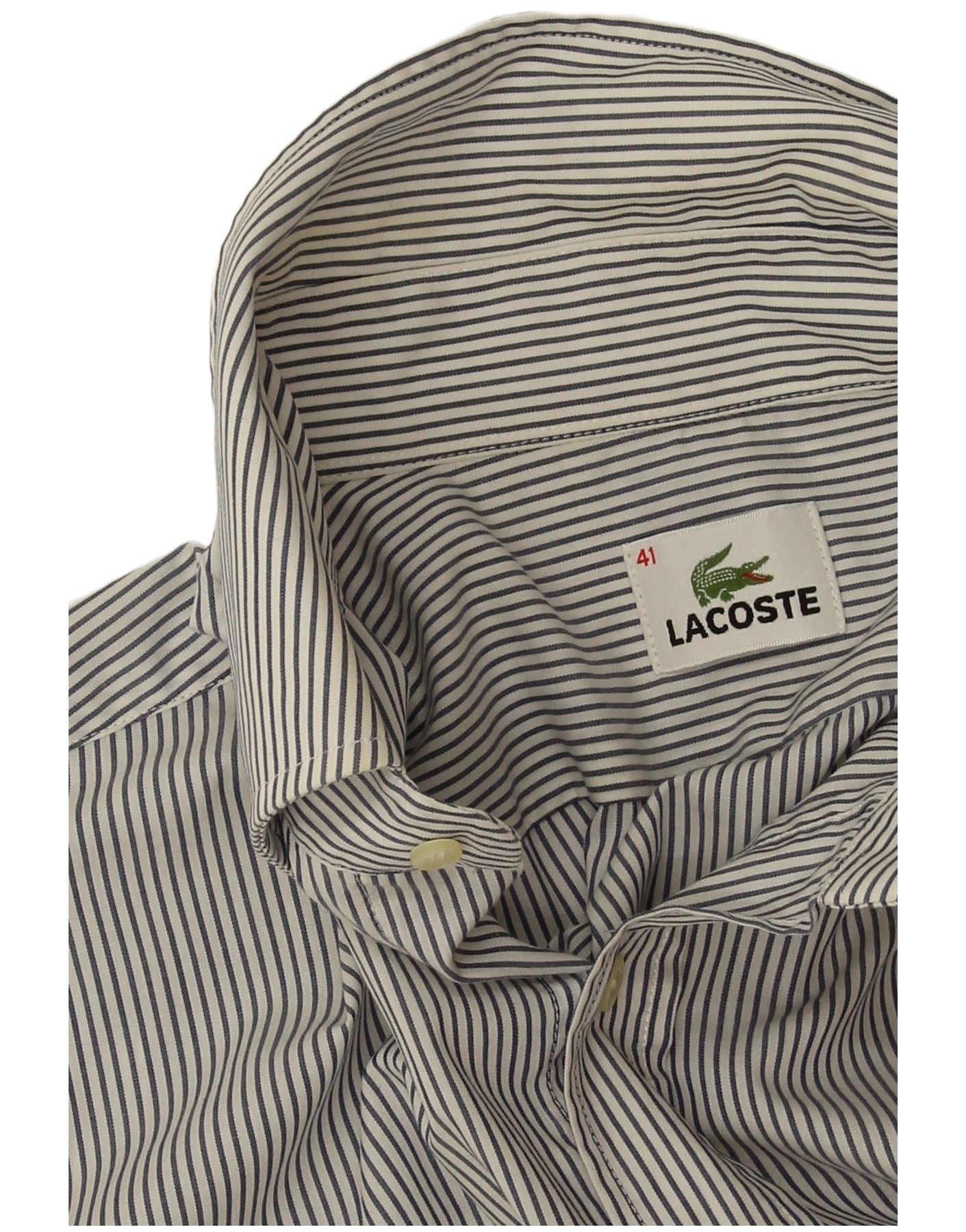 Lacoste Mens Short Sleeve Shirt Size 41 Large Grey Pinstripe Cotton