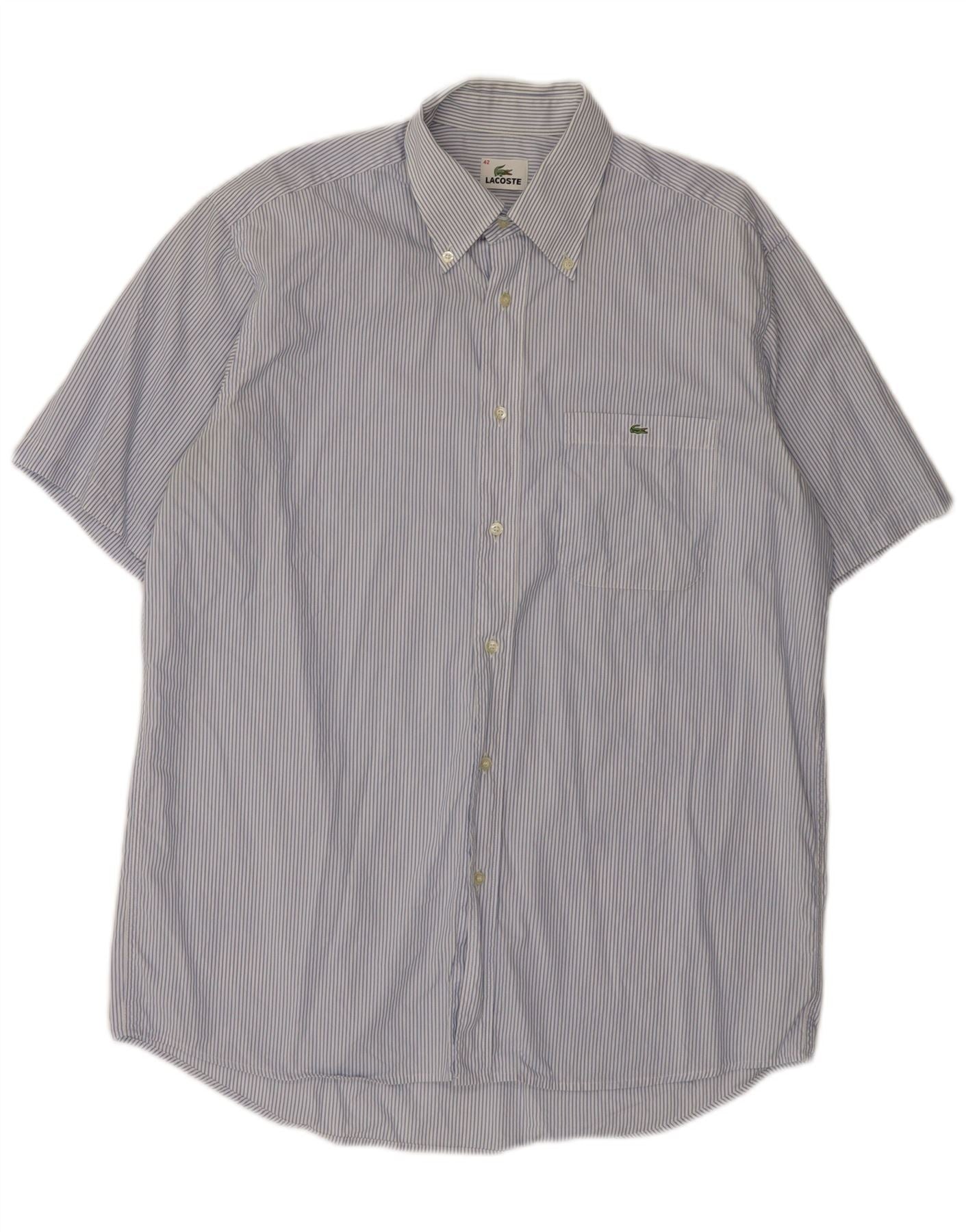 LACOSTE Mens Short Sleeve Shirt Size 42 Large Blue Striped Cotton