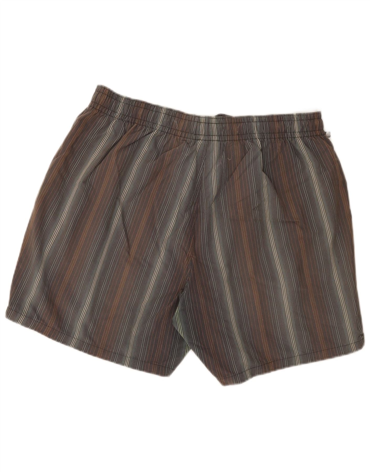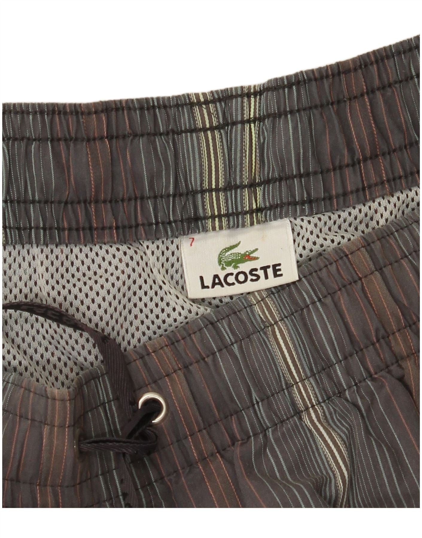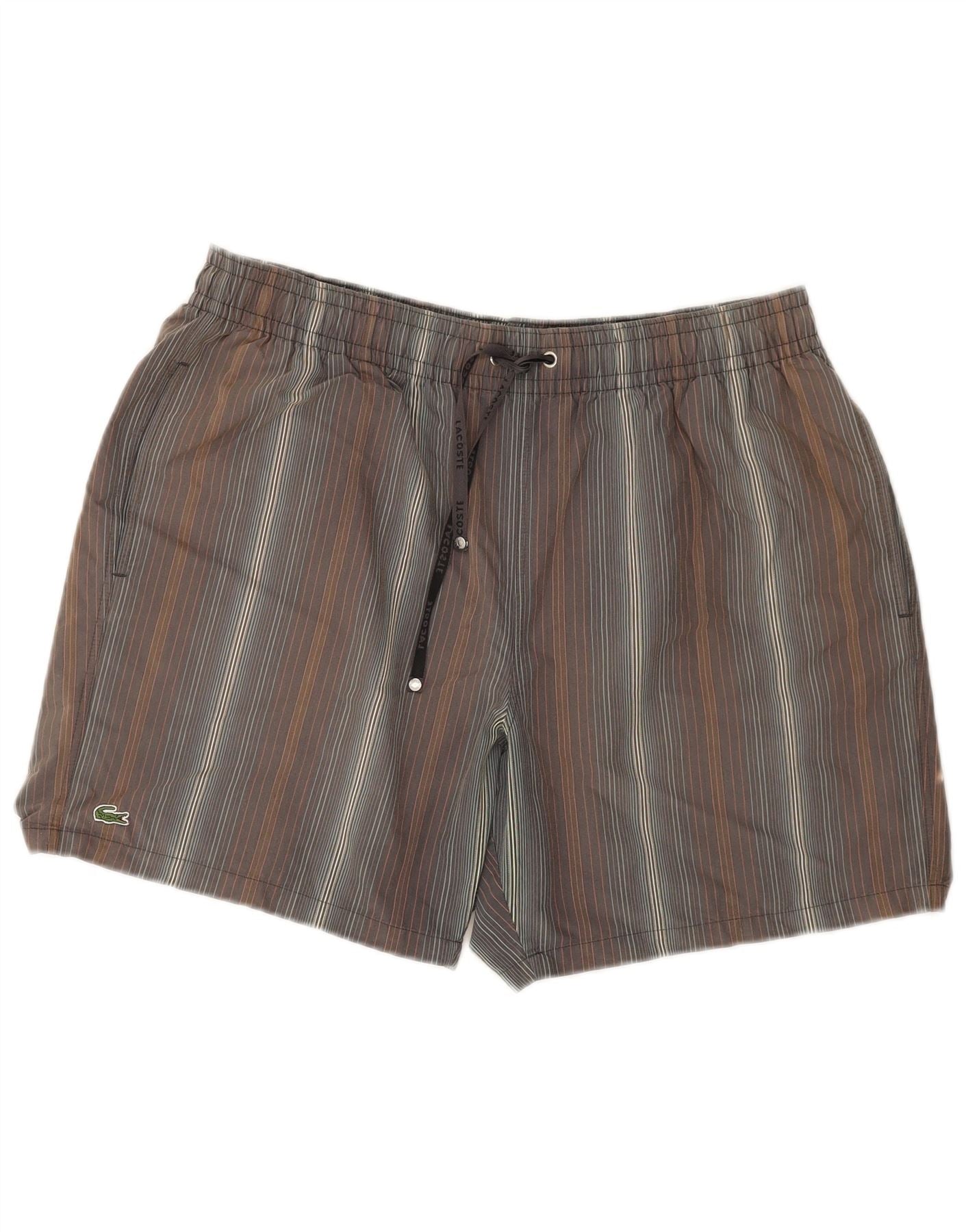LACOSTE Mens Swimming Shorts Size 7 2XL Brown Striped Cotton