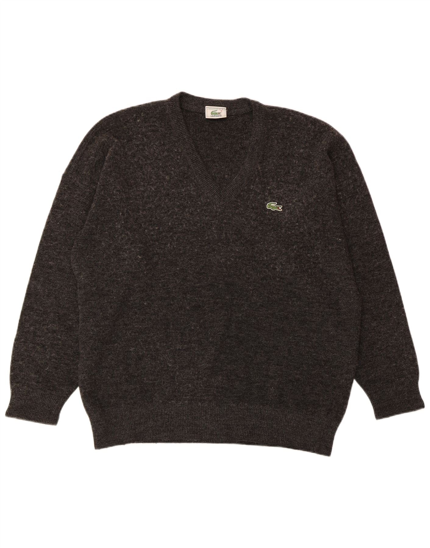 LACOSTE Mens V-Neck Jumper Sweater Size 6 XL Grey Wool