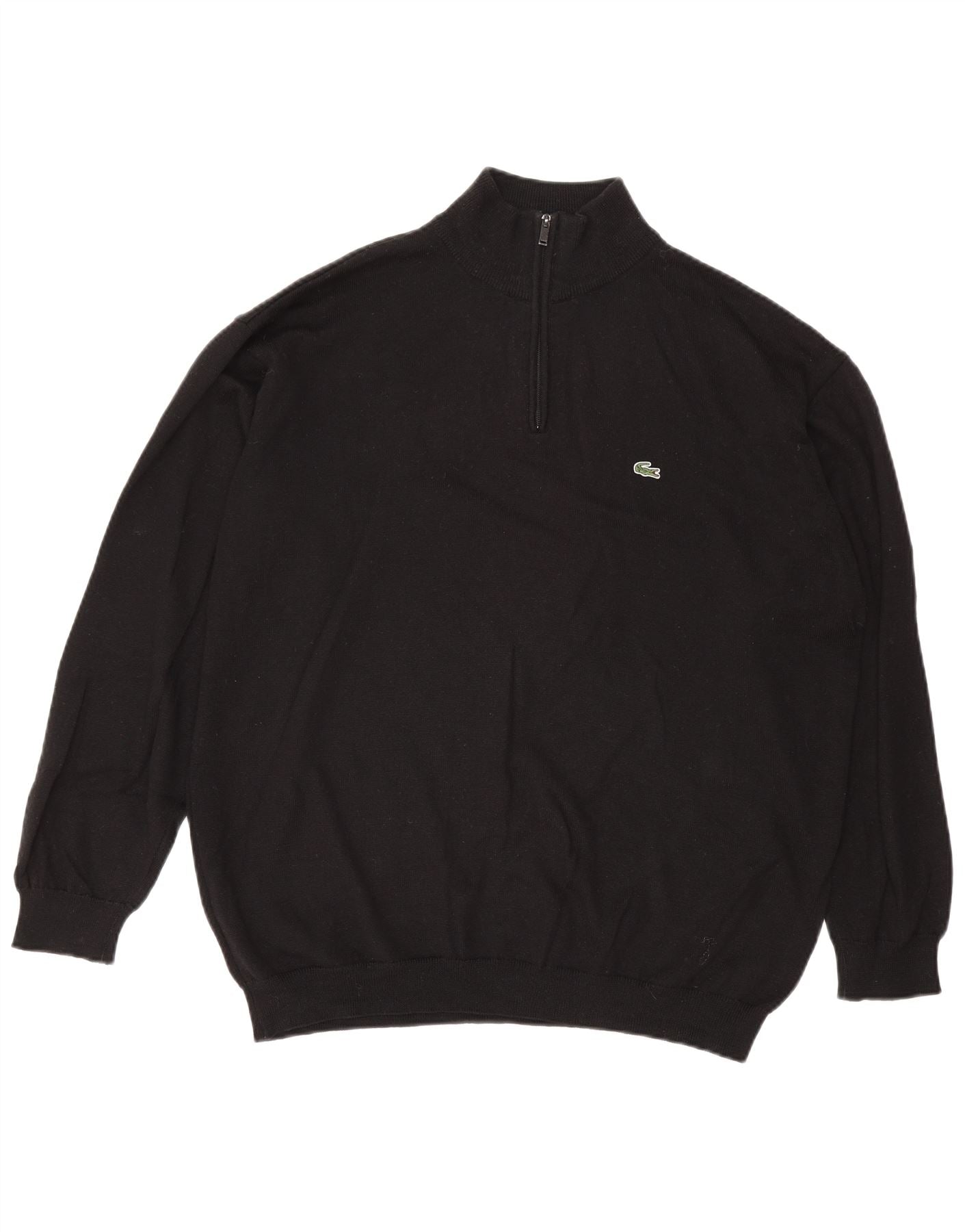 LACOSTE Mens Zip Neck Jumper Sweater Size 8 3XL Black Wool