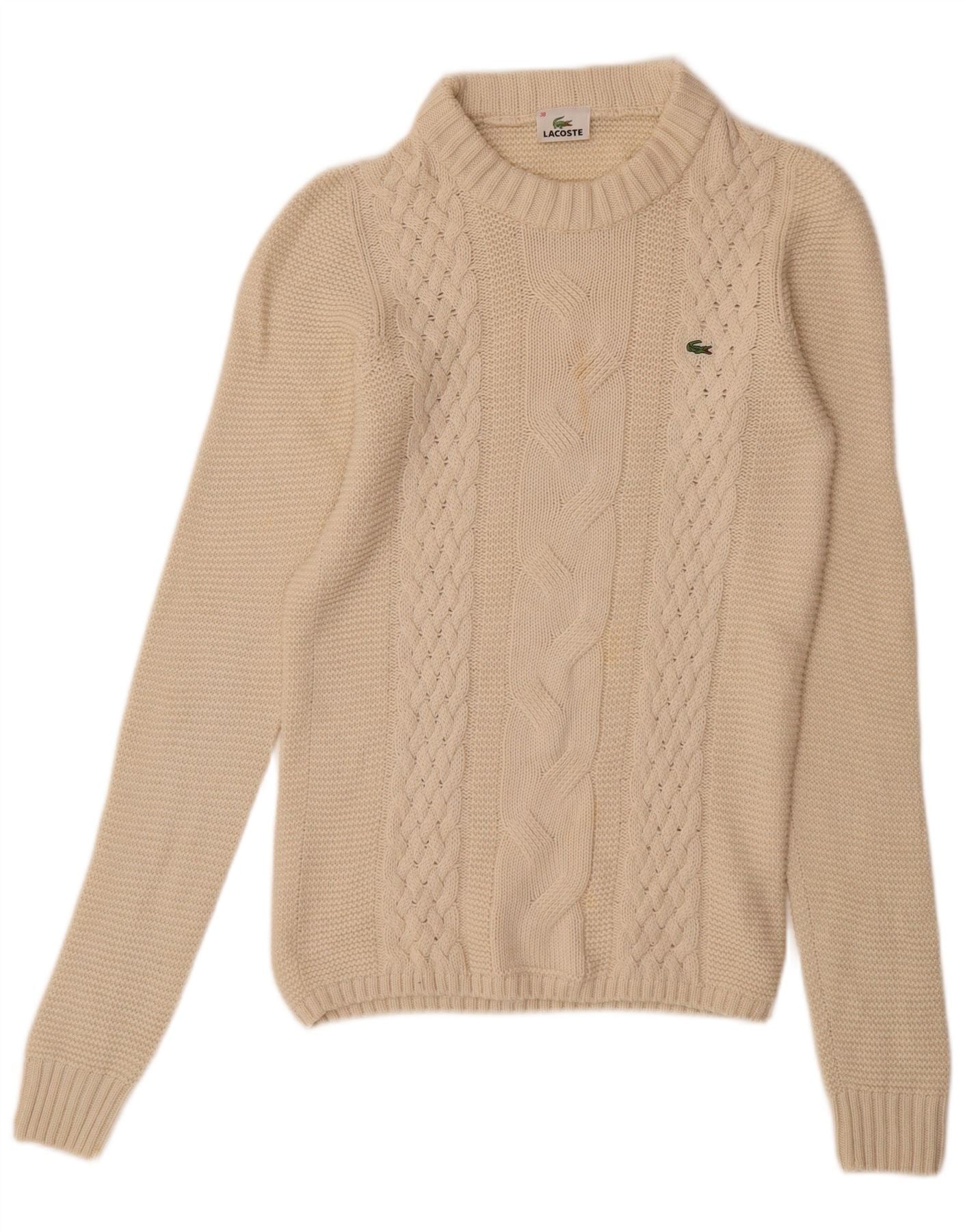 LACOSTE Womens Crew Neck Jumper Sweater Size 38 Medium Beige Wool
