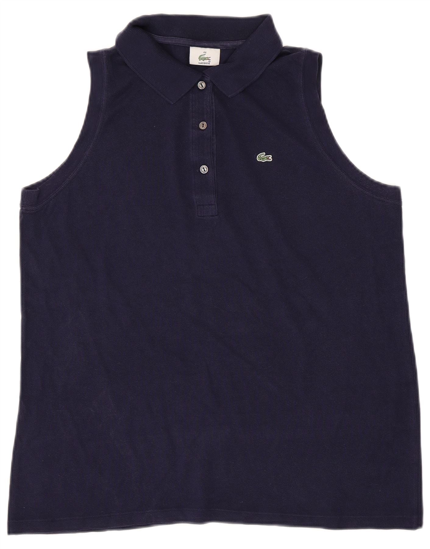 LACOSTE Womens Sleeveless Polo Shirt Size 44 Large Navy Blue Cotton
