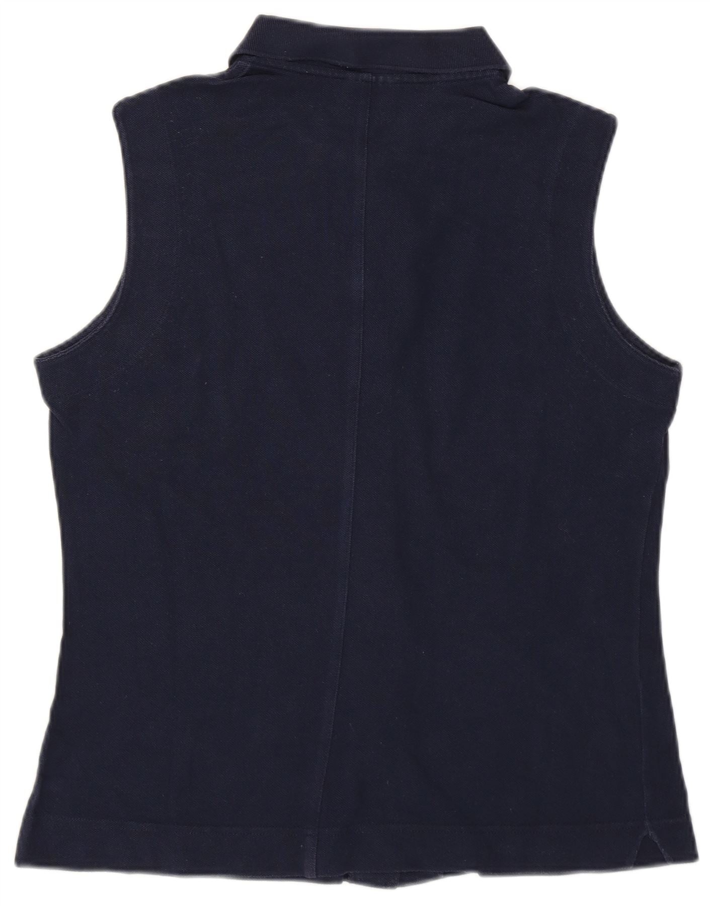 Lacoste Womens Sleeveless Shirt Blouse Size 44 Large Navy Blue Cotton