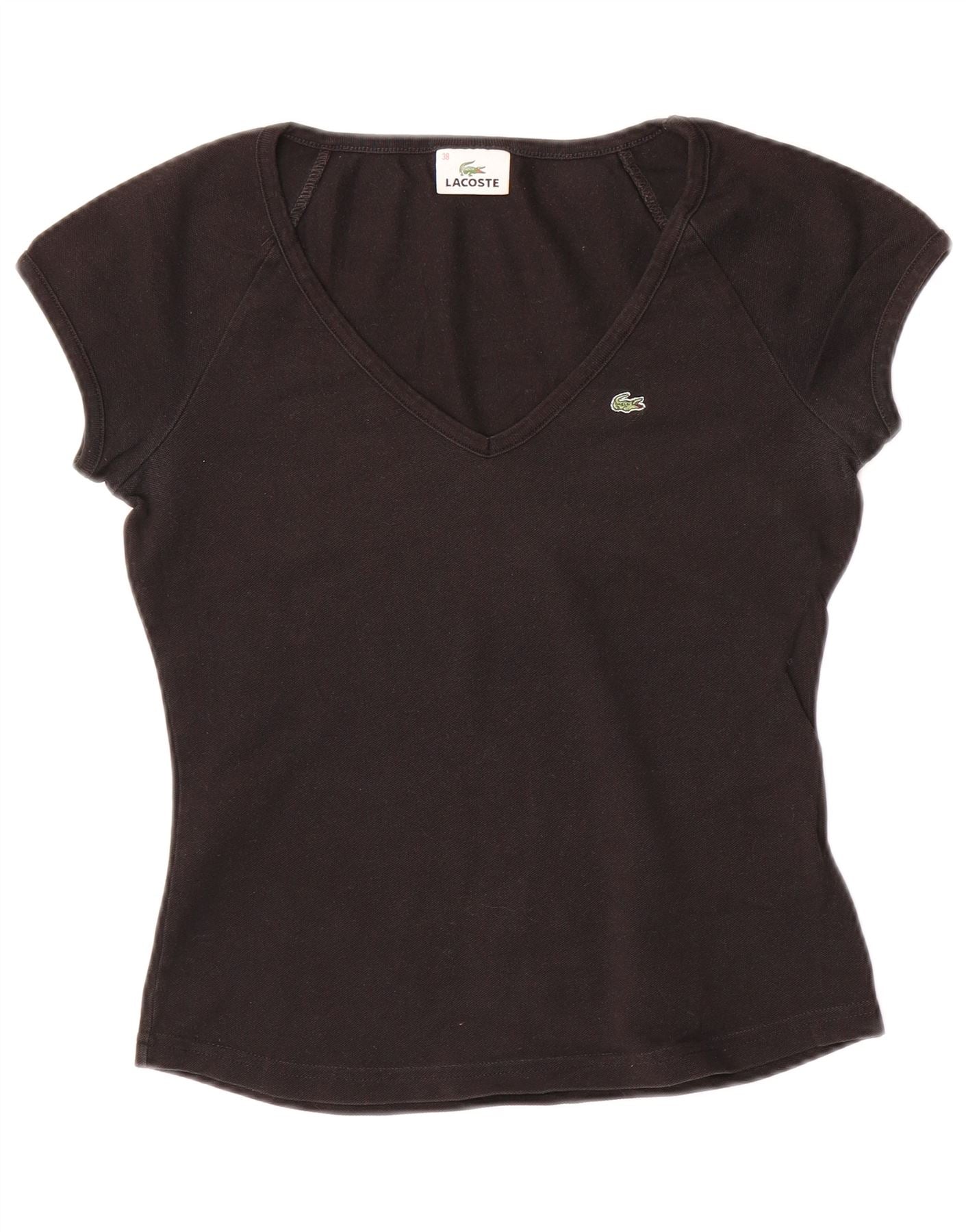 LACOSTE Womens T-Shirt Top Size 38 Medium Black Cotton