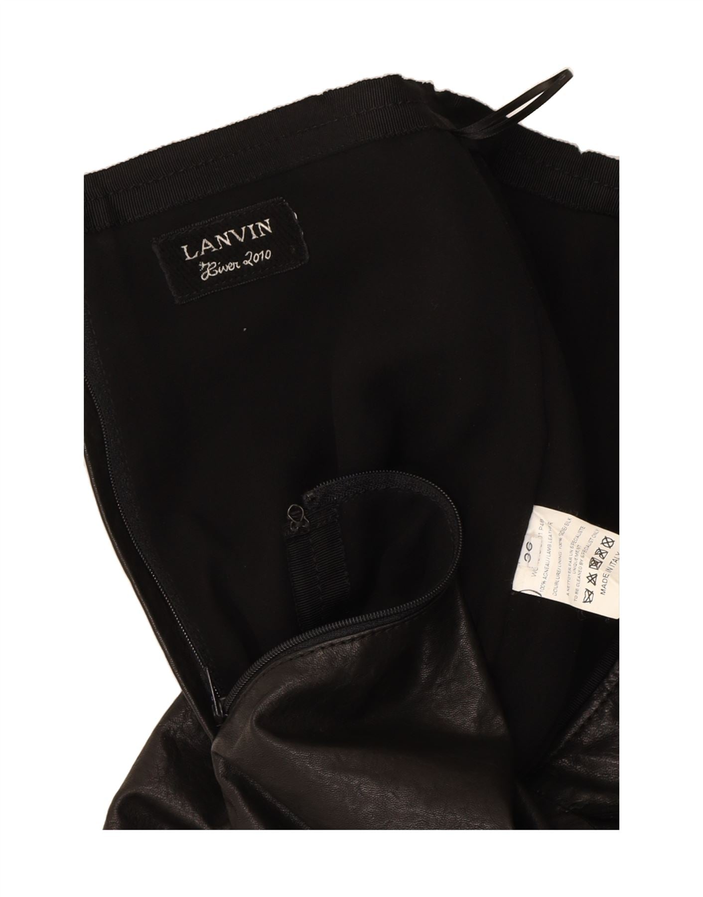 LANVIN Womens Leather A-Line Skirt EU 36 Small W26 Black Leather