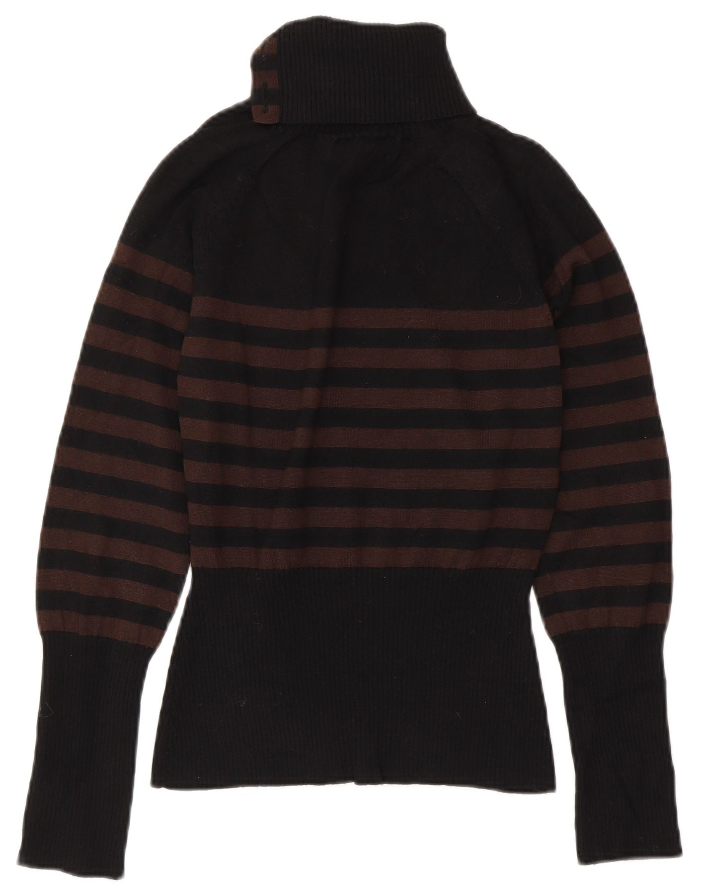 LAURA ASHLEY Womens Button Neck Jumper Sweater UK 12 Medium Black Striped