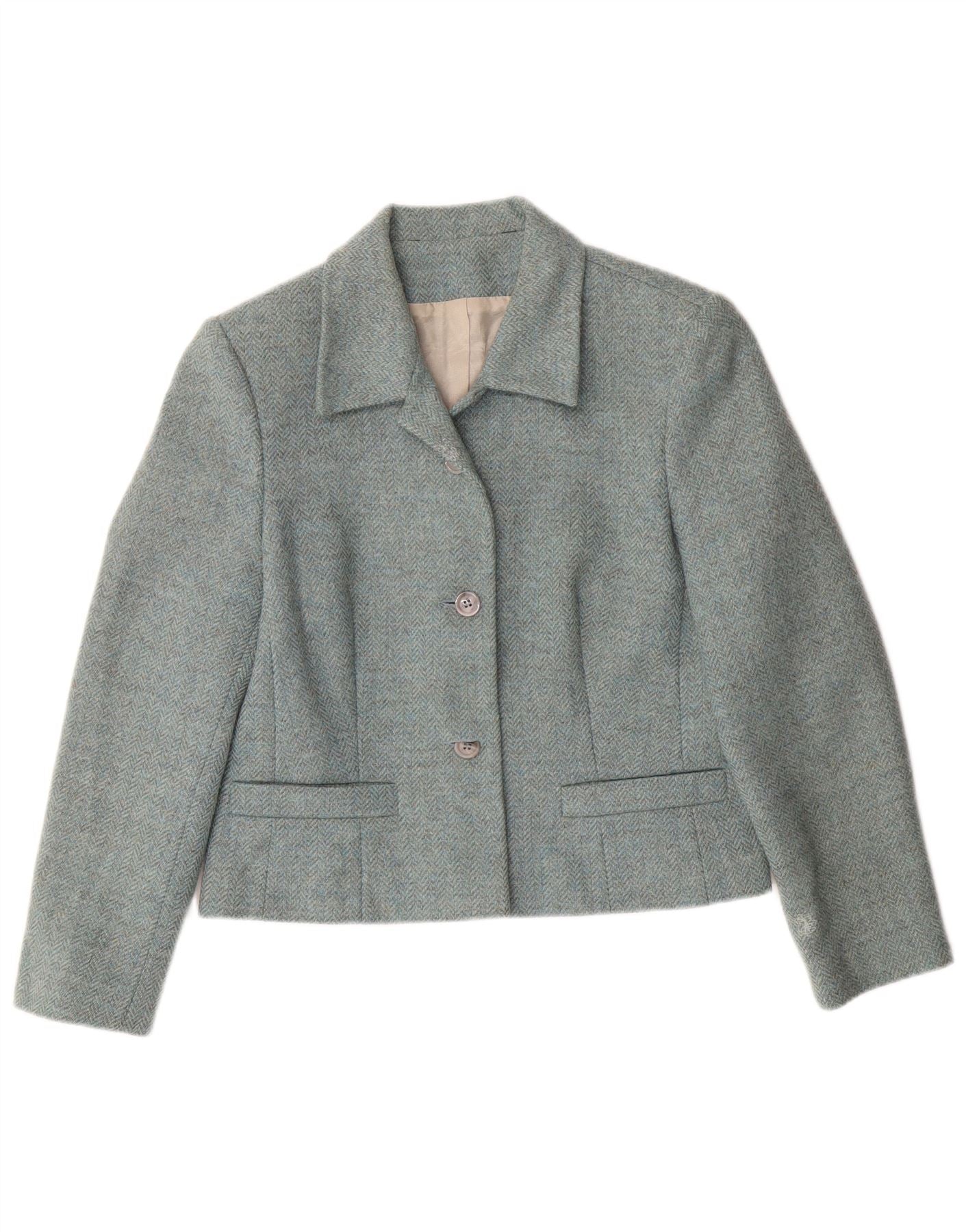 LAURA ASHLEY Womens Crop 3 Button Blazer Jacket UK 12 Medium Blue Wool