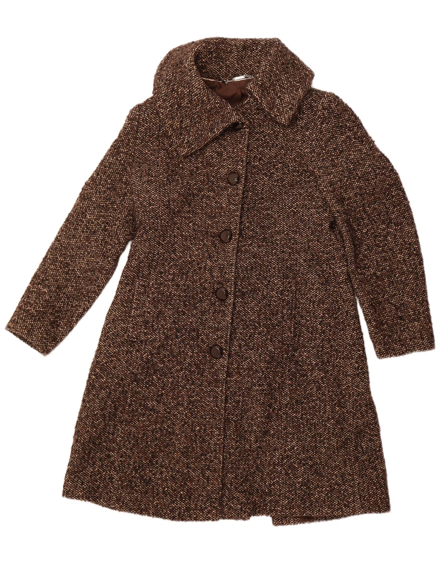 LAURA ASHLEY Womens Overcoat UK 16 Large Brown Flecked Wool