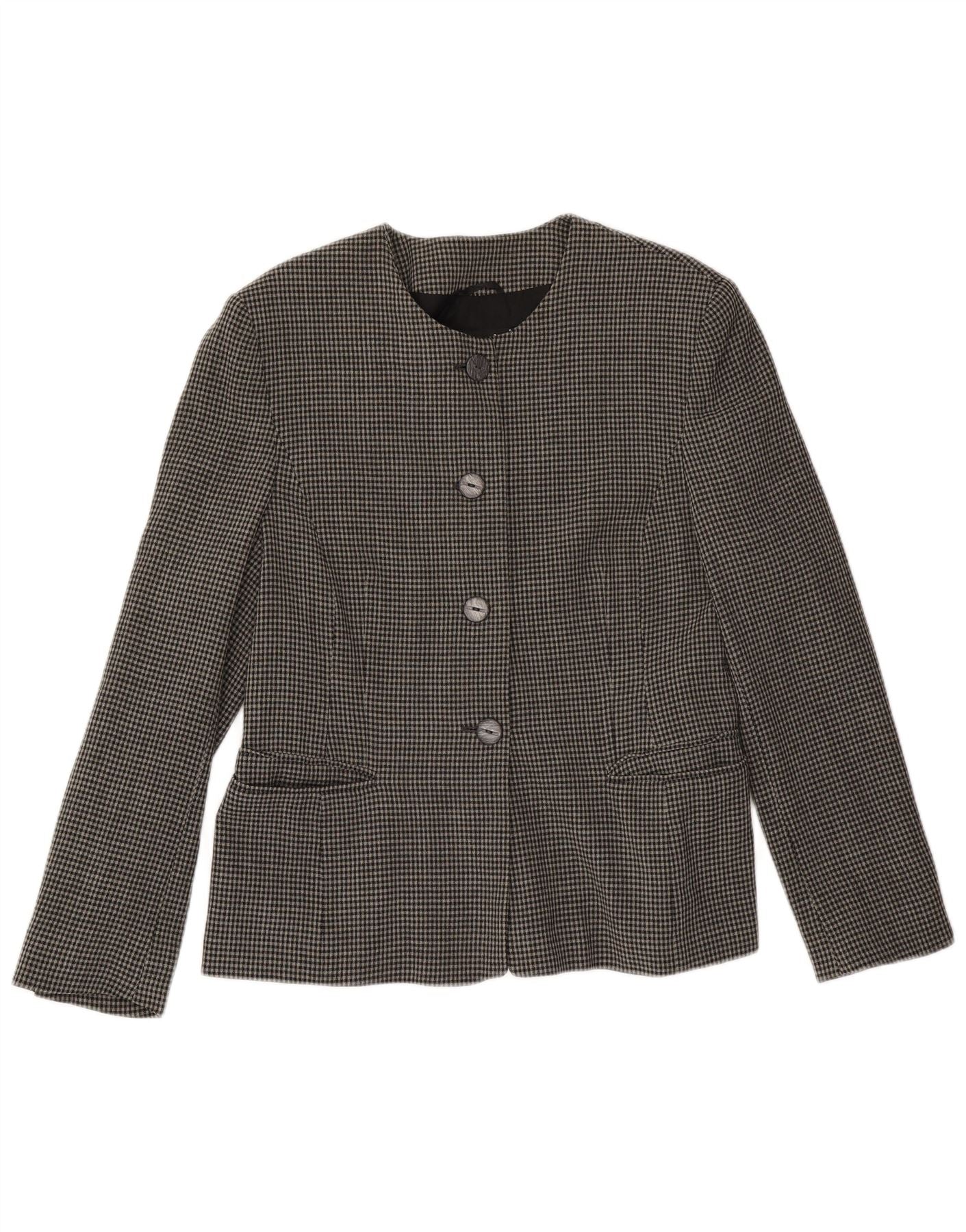 LAUREL Womens 4 Button Blazer Jacket EU 42 Large Grey Houndstooth Wool