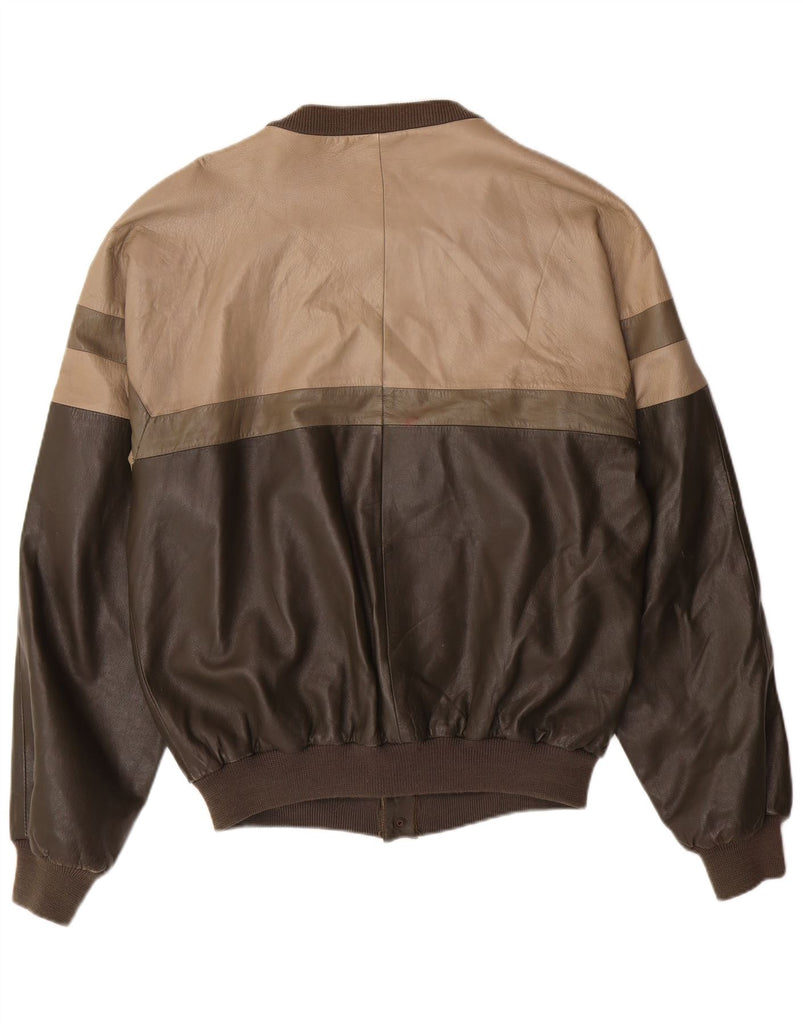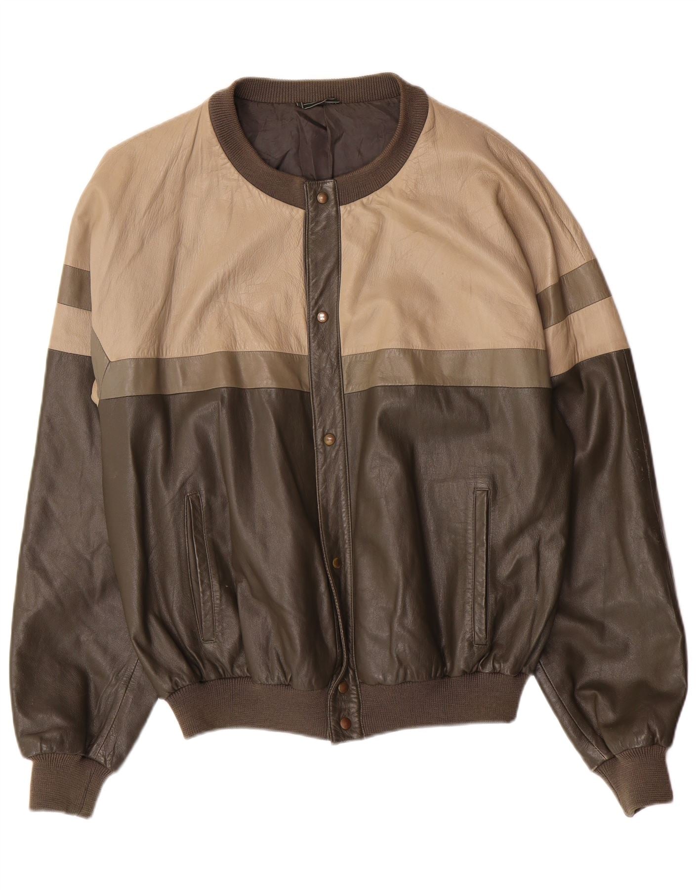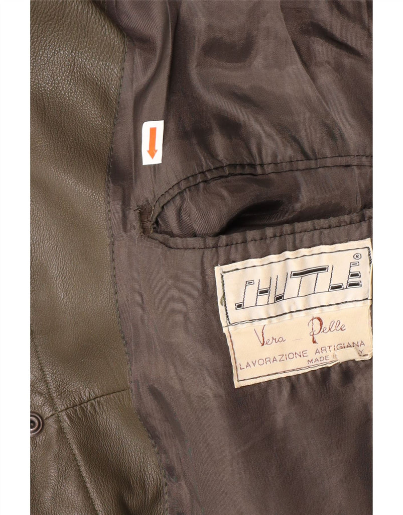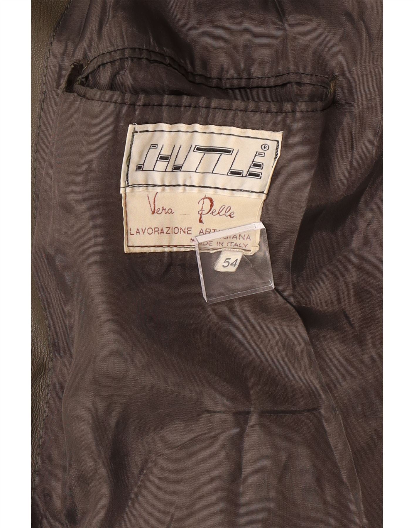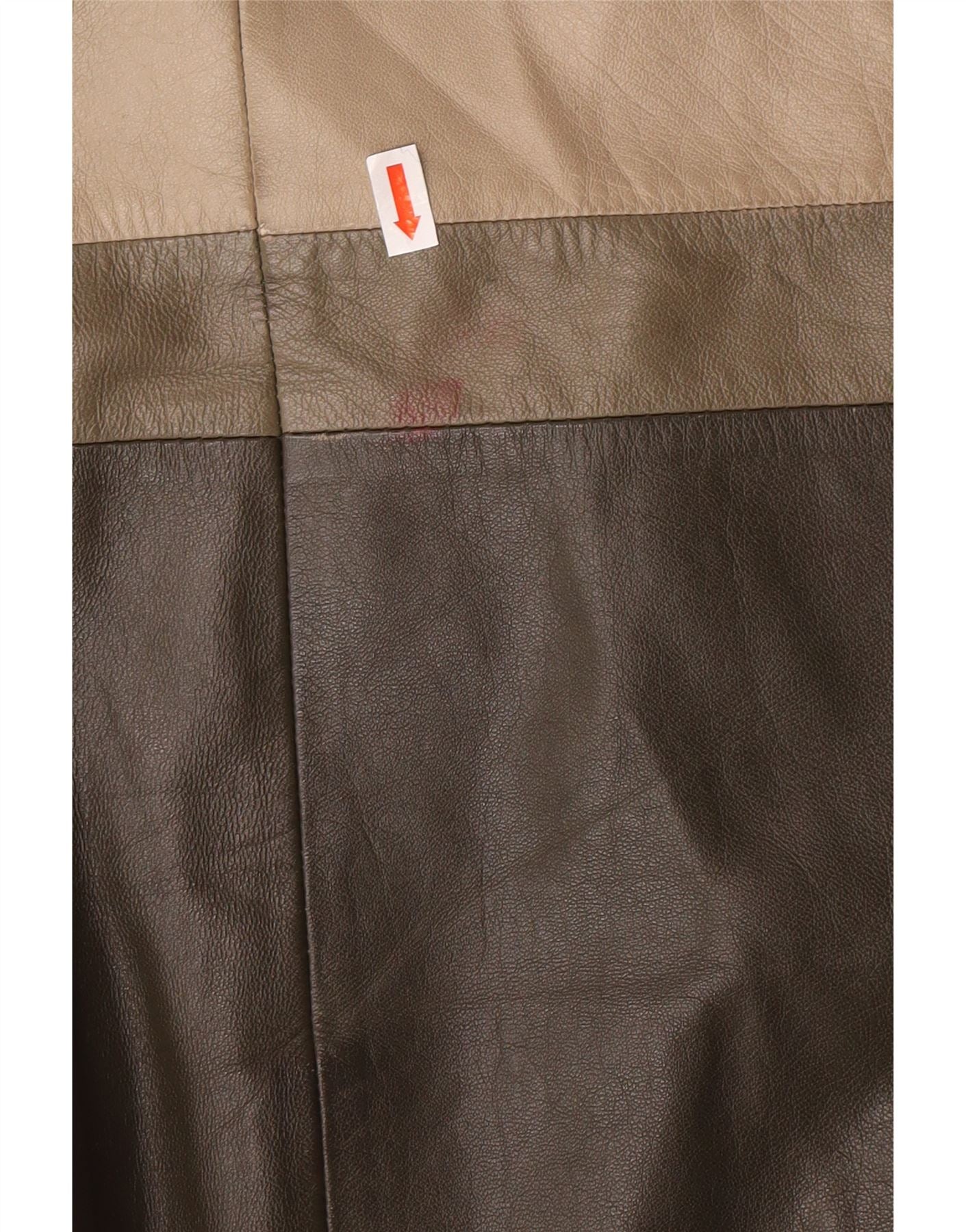 LAVORAZIONE ARTIGIANA Mens Jacket IT 54 2XL Khaki Colourblock Leather