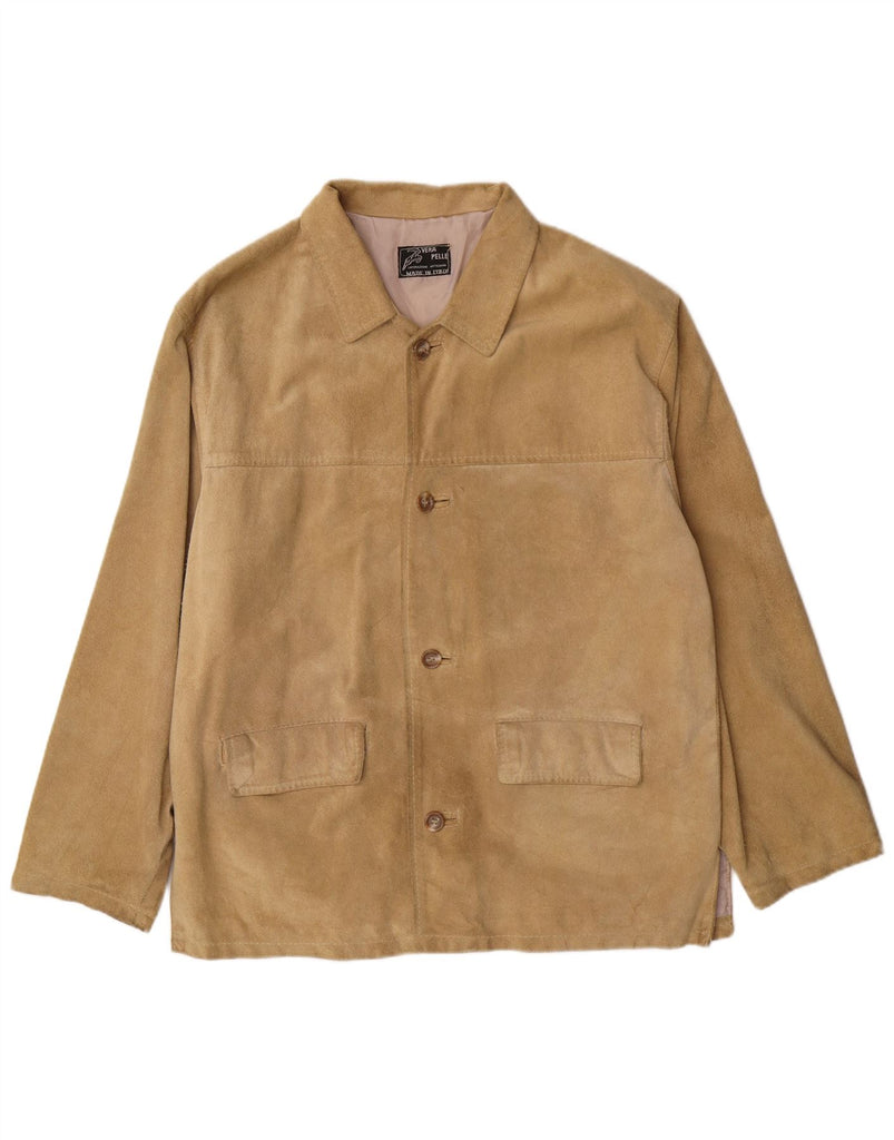 LAVORAZIONE ARTIGIANA Mens Suede Jacket UK 38 Medium Beige Leather