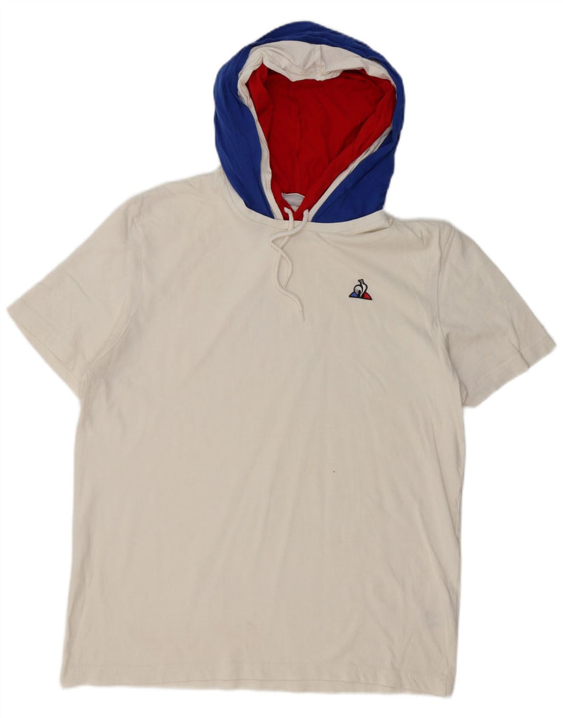 LE COQ SPORTIF Mens Hooded T-Shirt Top XL White Colourblock Cotton
