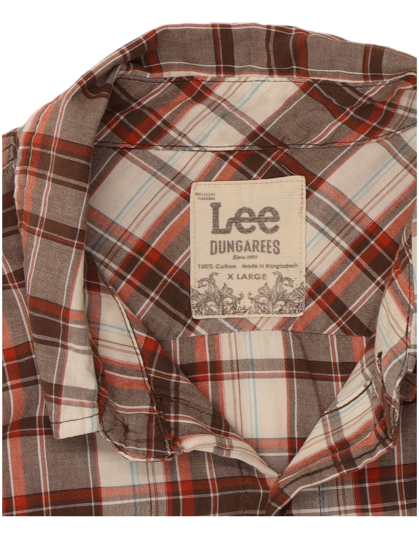LEE Mens Dungarees Short Sleeve Shirt XL Multicoloured Check Cotton