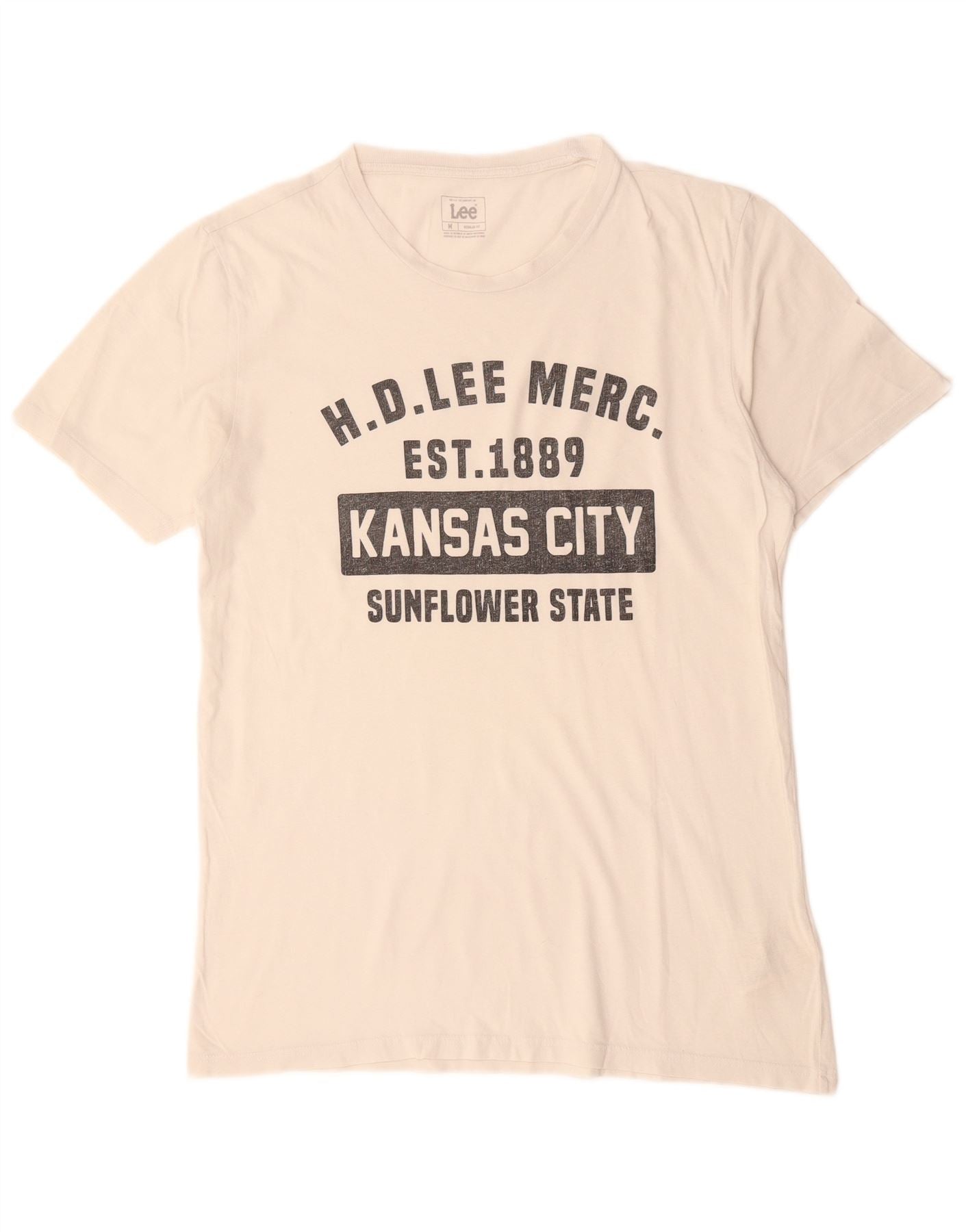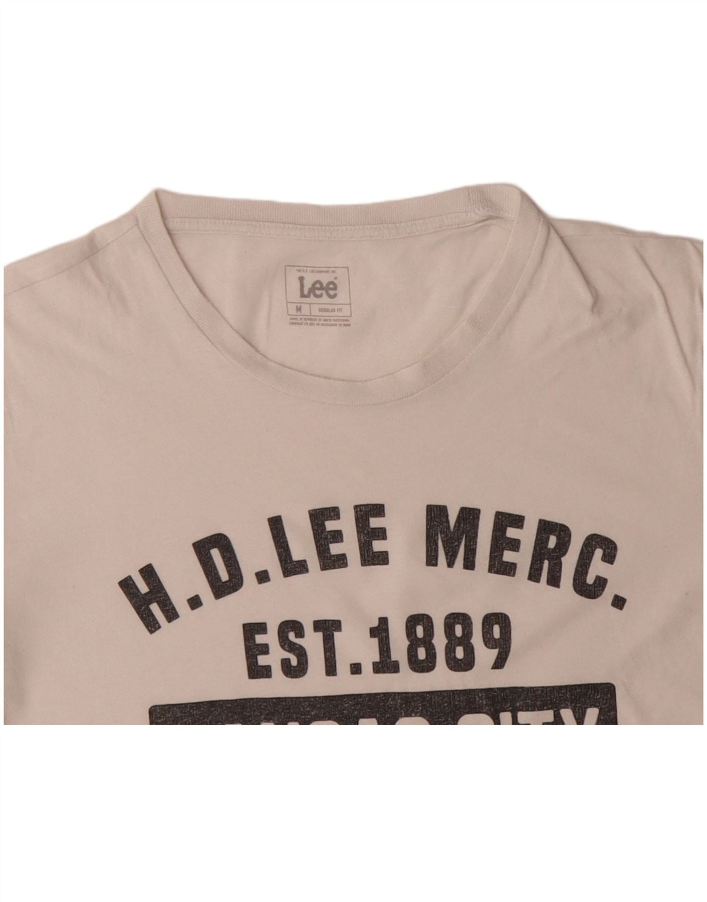 LEE Mens Regular Fit Graphic T-Shirt Top Medium Off White Cotton