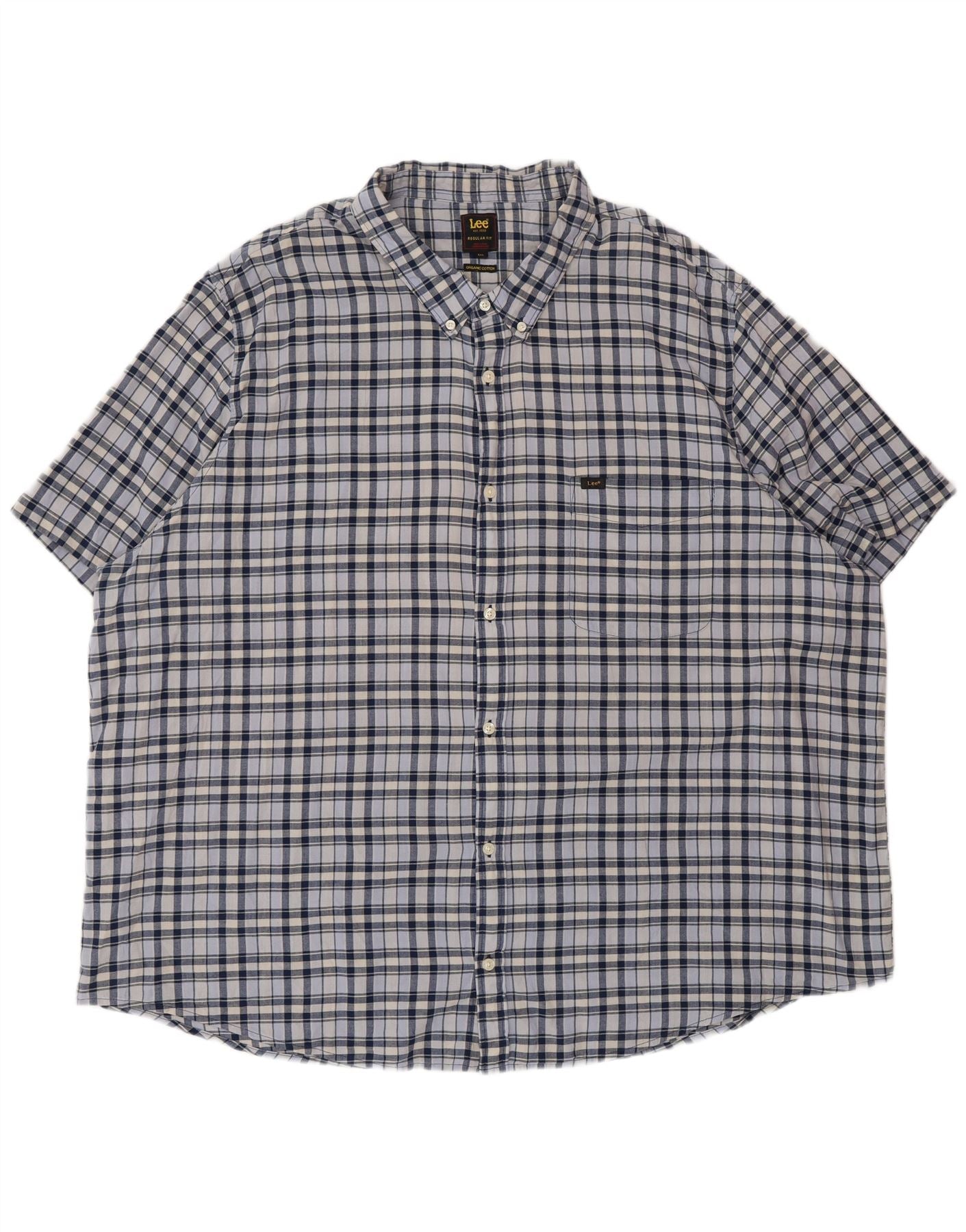 Lee Mens Regular Fit Short Sleeve Shirt 5XL Blue Check Cotton