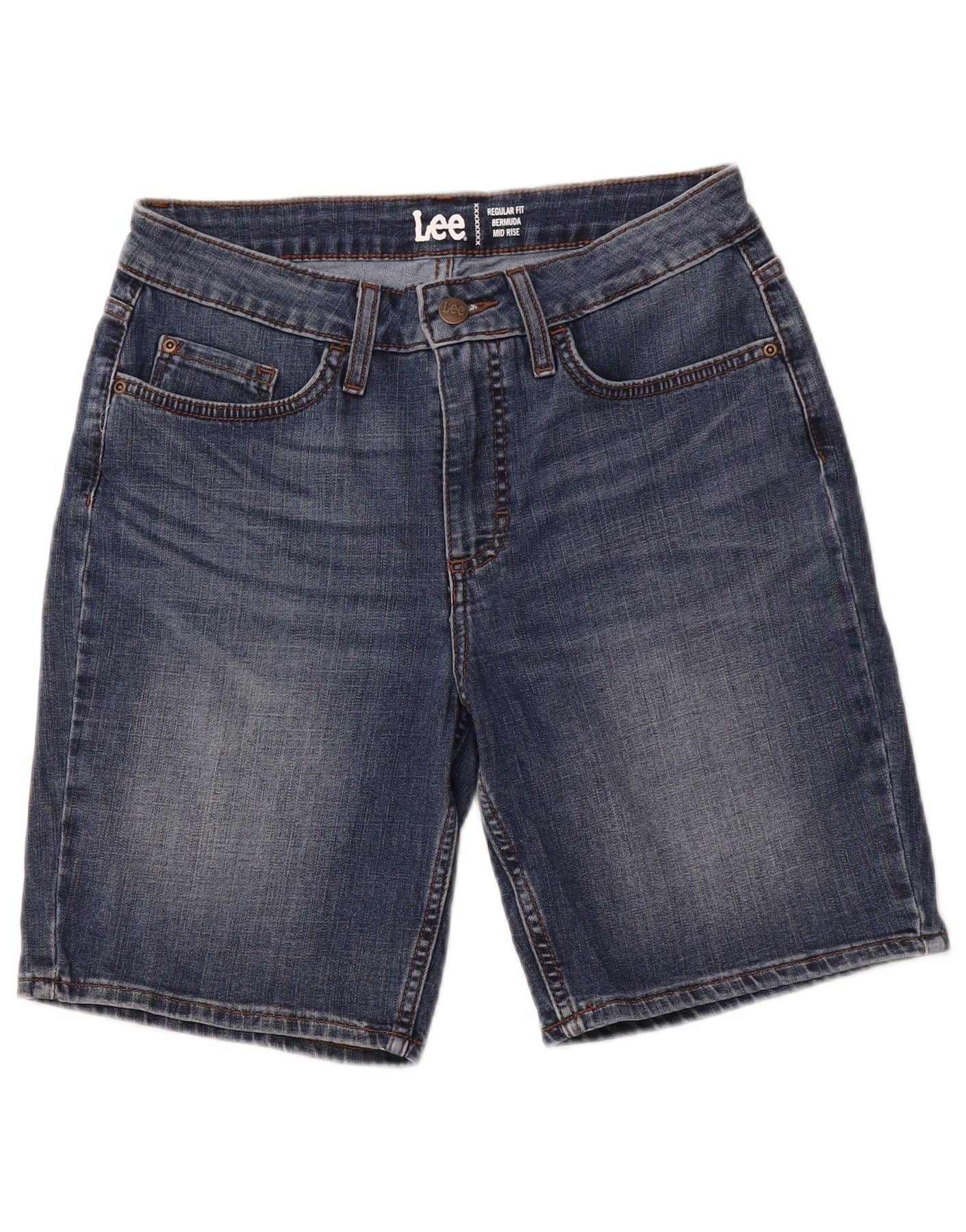 LEE Womens Mid Rise Regular Bermuda Denim Shorts US 10 Large W28 Blue