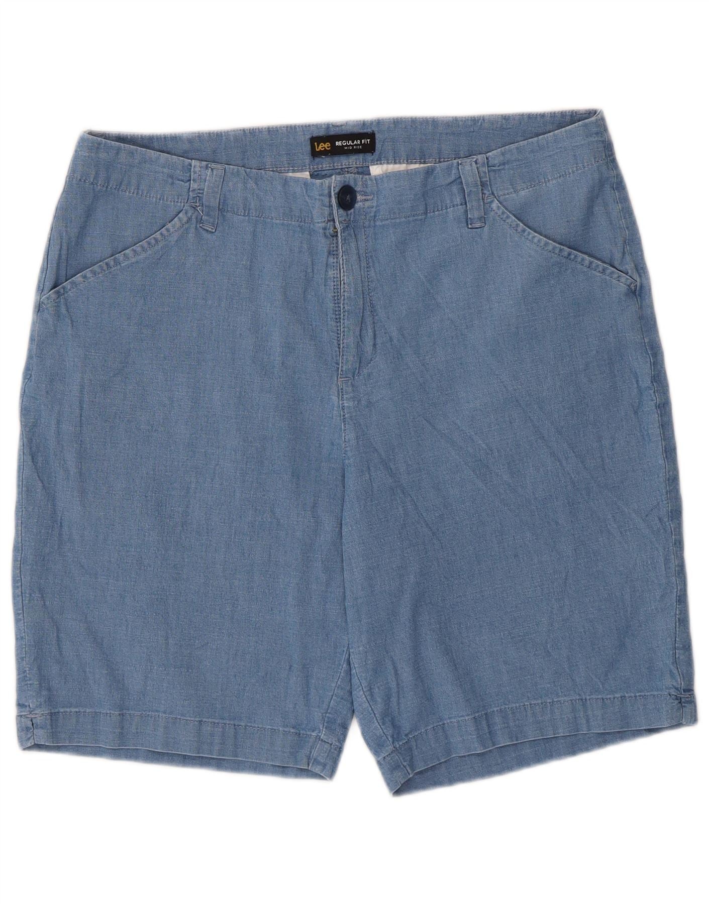 LEE Womens Regular Fit Mid Rise Casual Shorts US 16 2XL W36 Blue Cotton