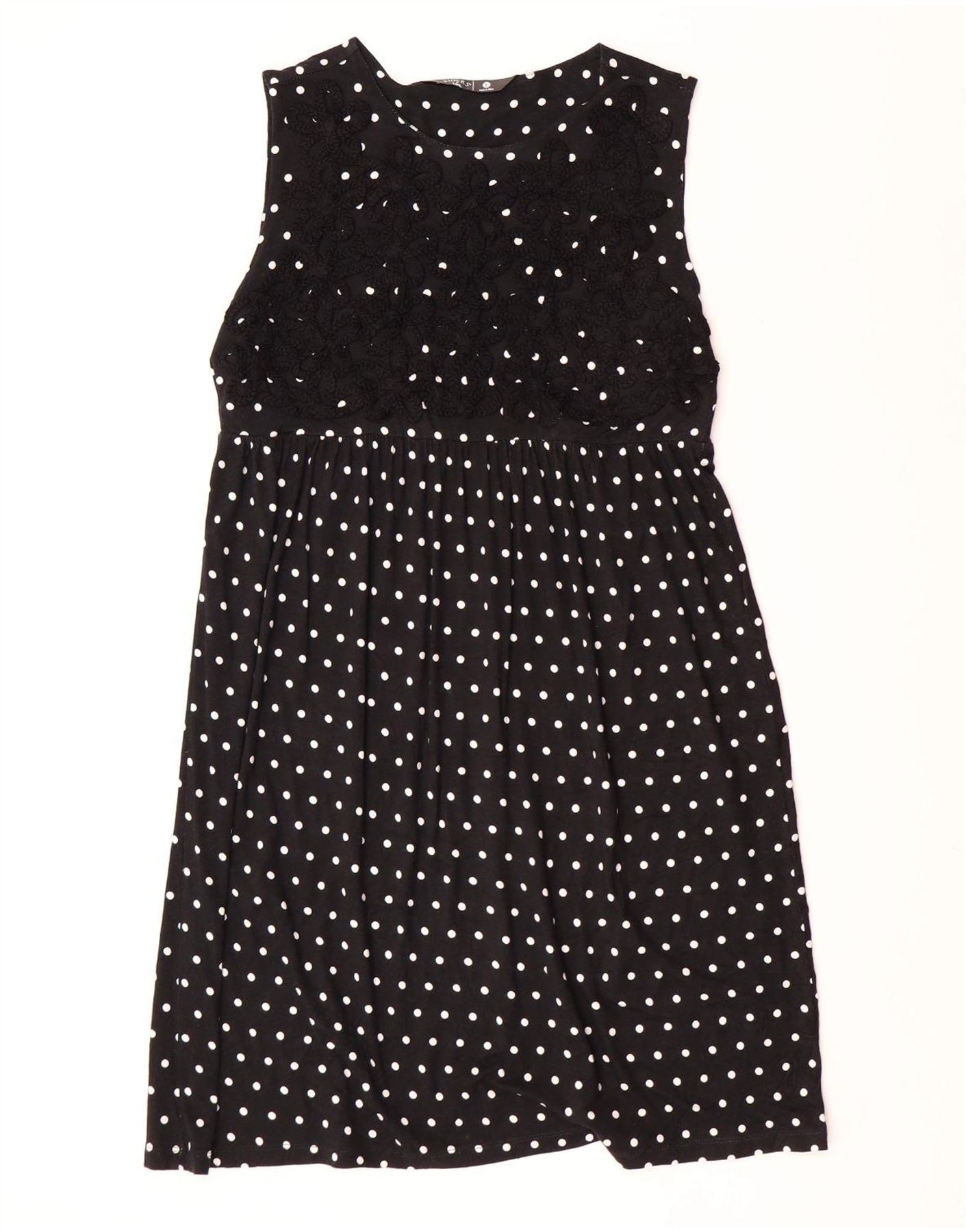 LEE Womens Riders Sleeveless A-Line Dress UK 14 Large Black Polka Dot