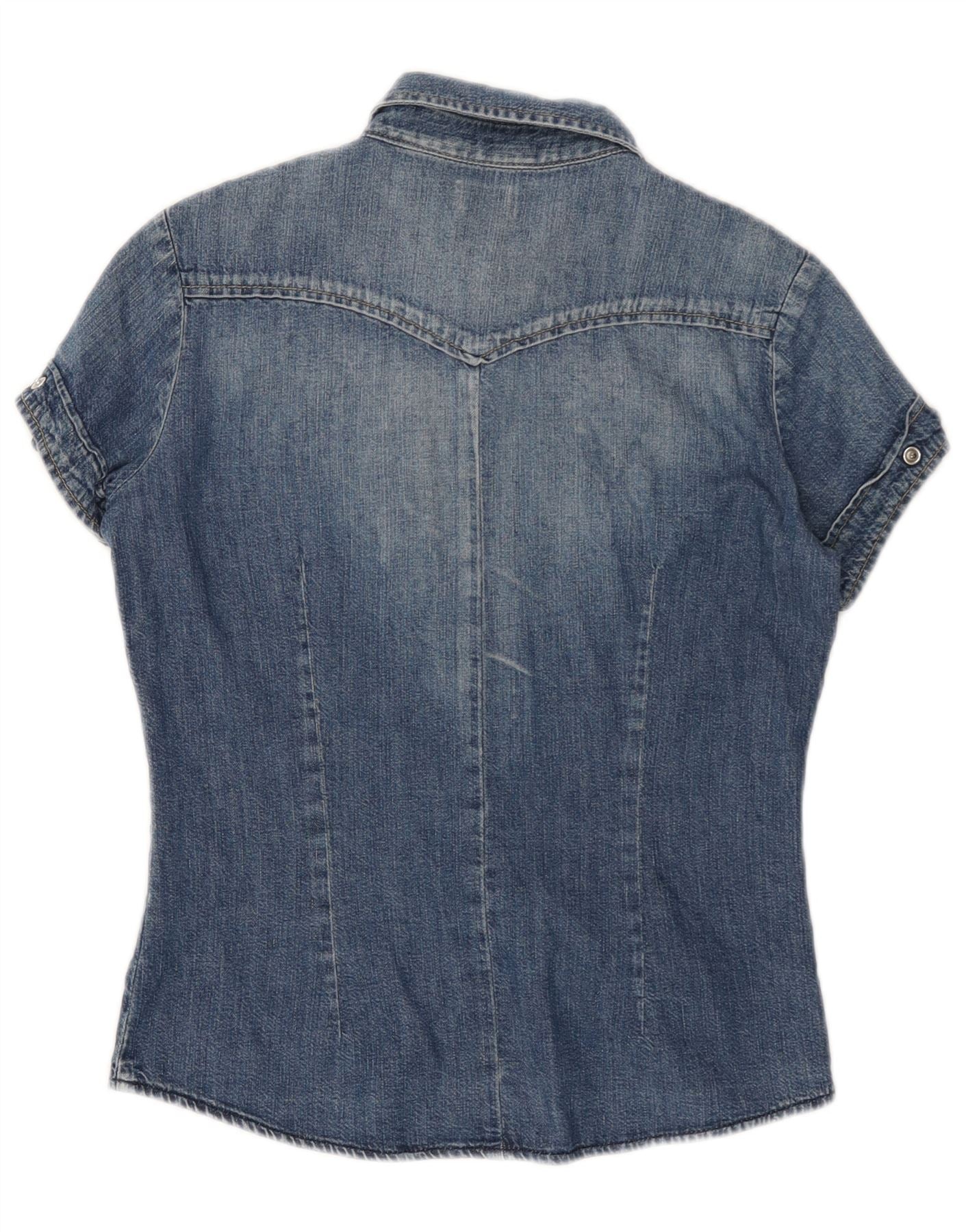 LEE Womens Short Sleeve Denim Shirt UK 10 Small Blue Cotton