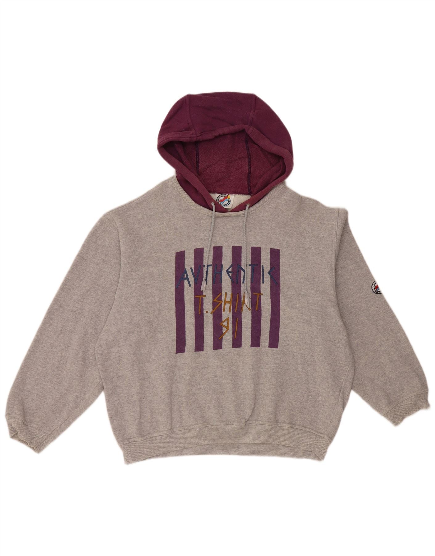 L'Equipe Womens Graphic Loose Fit Hoodie Jumper UK 20 2XL Grey Cotton