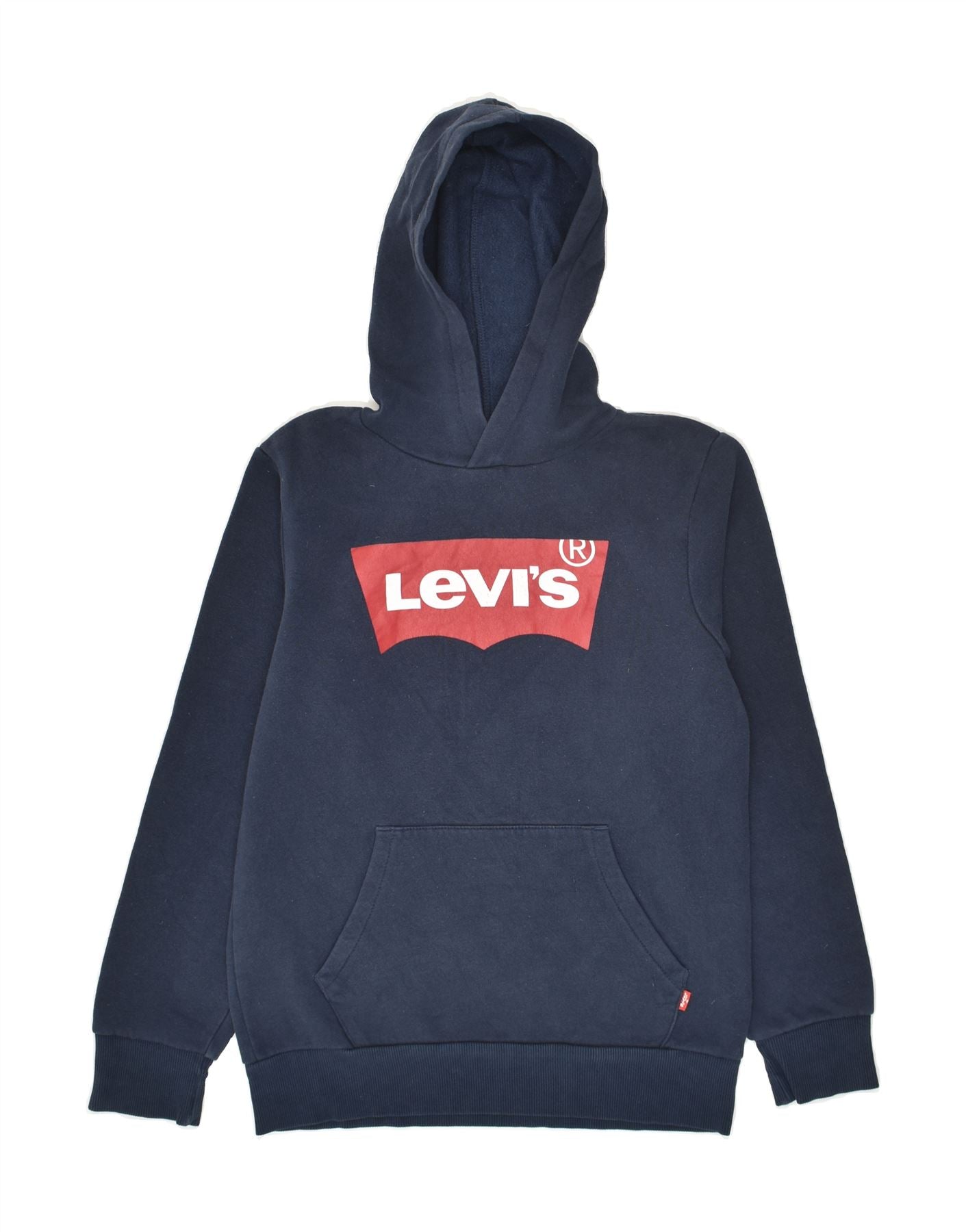 LEVI'S Boys Graphic Hoodie Jumper 13-14 Years Navy Blue Cotton