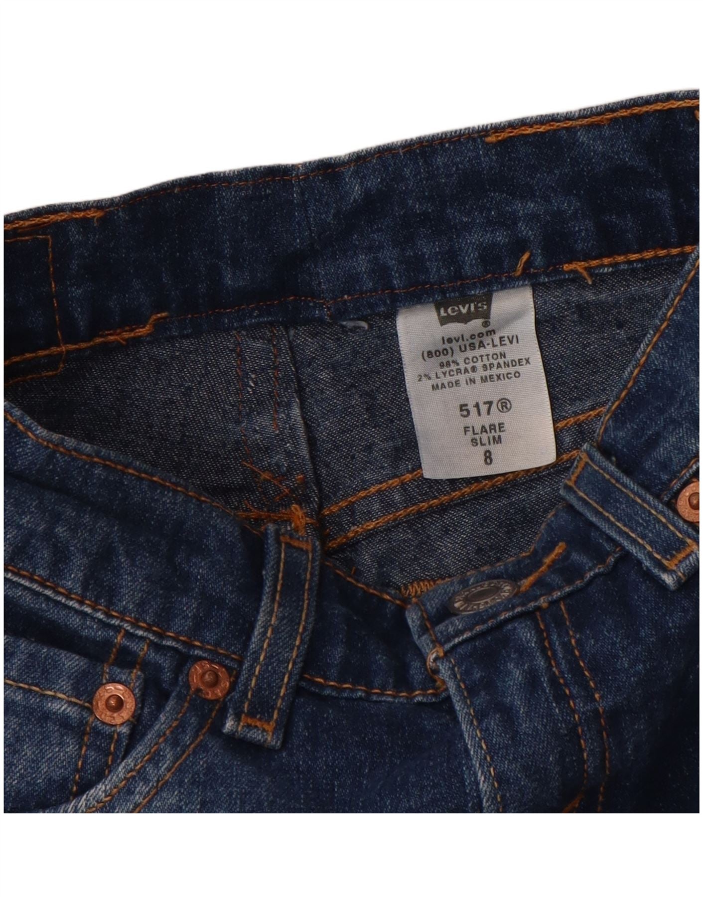 LEVI'S Girls 517 Slim Flared Jeans 7-8 Years W20 L21 Blue Cotton