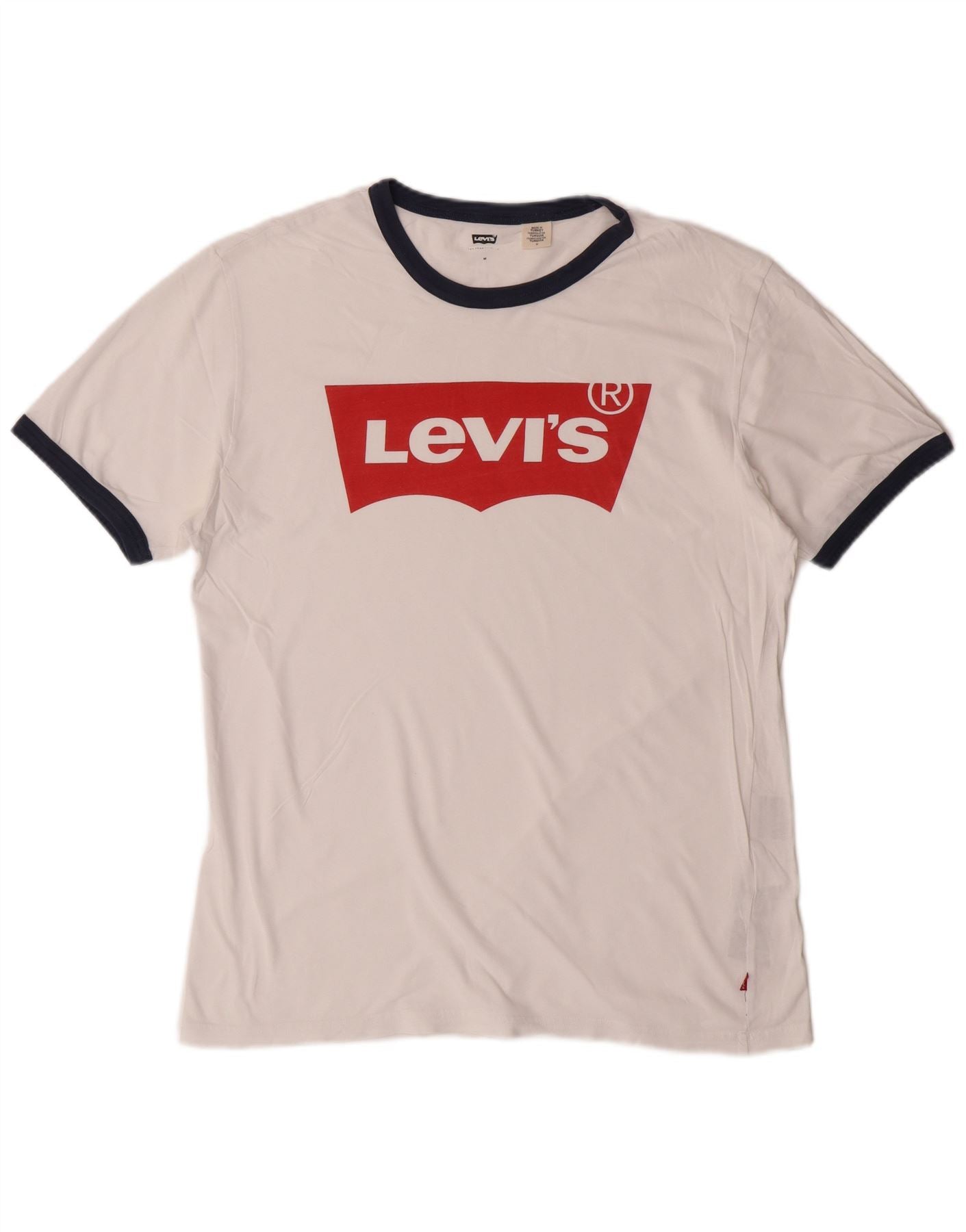 LEVI'S Mens Graphic T-Shirt Top Medium White Cotton Classic