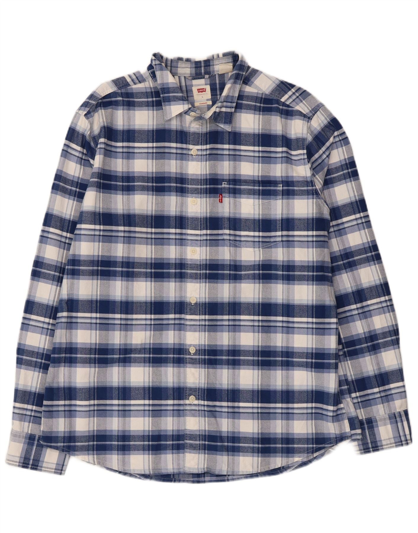 LEVI'S Mens Standard Fit Flannel Shirt Large Blue Check Cotton