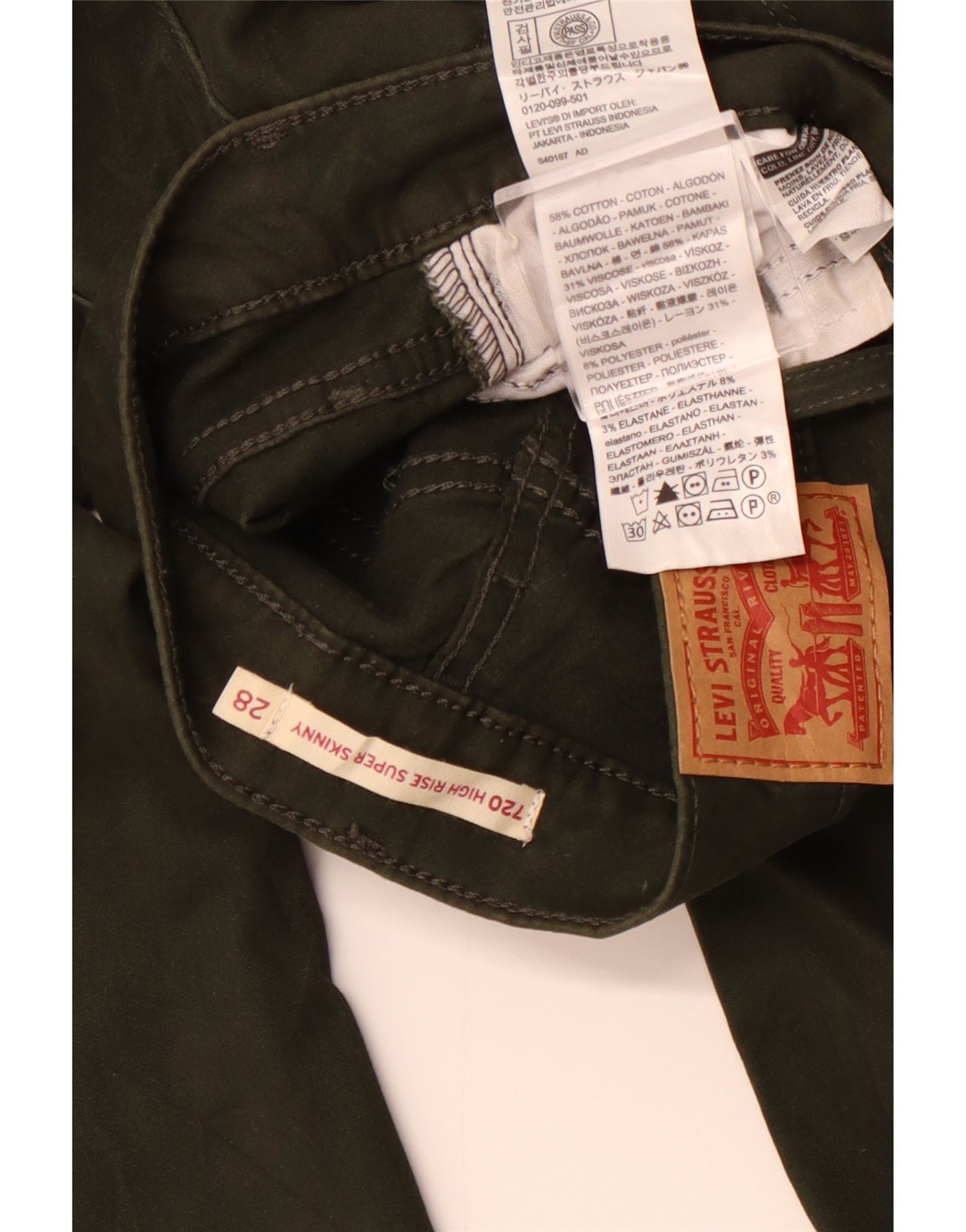 LEVI'S Womens 720 High Waist Super Skinny Casual Trousers W28 L30 Khaki
