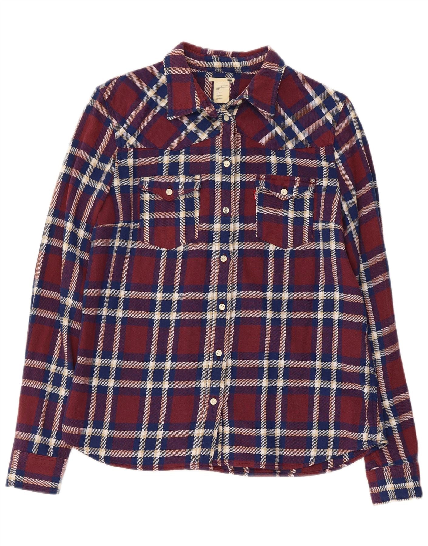 LEVI'S Womens Flannel Shirt UK 14 Medium Maroon Check Cotton