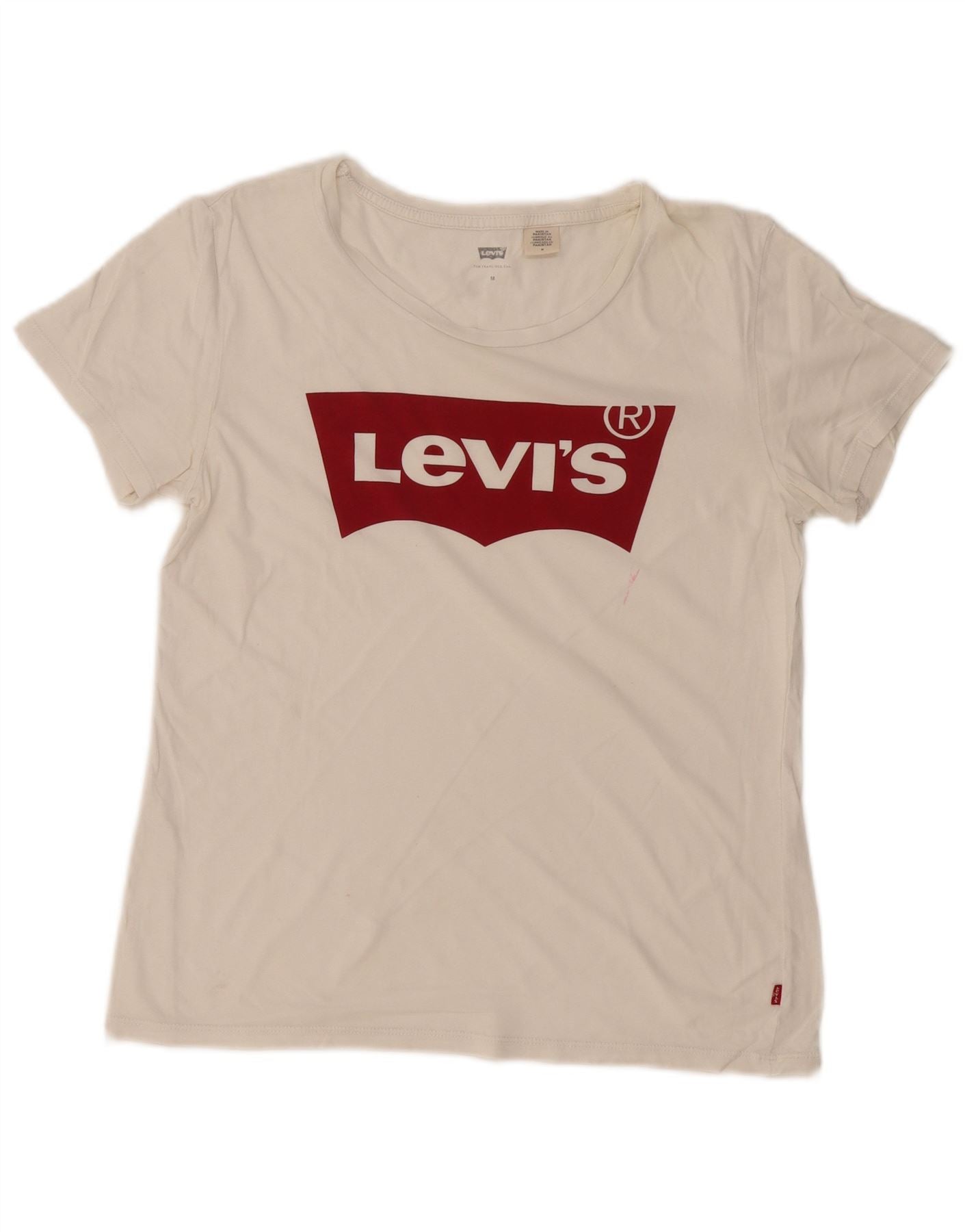 LEVI'S Womens Graphic T-Shirt Top UK 12 Medium Off White