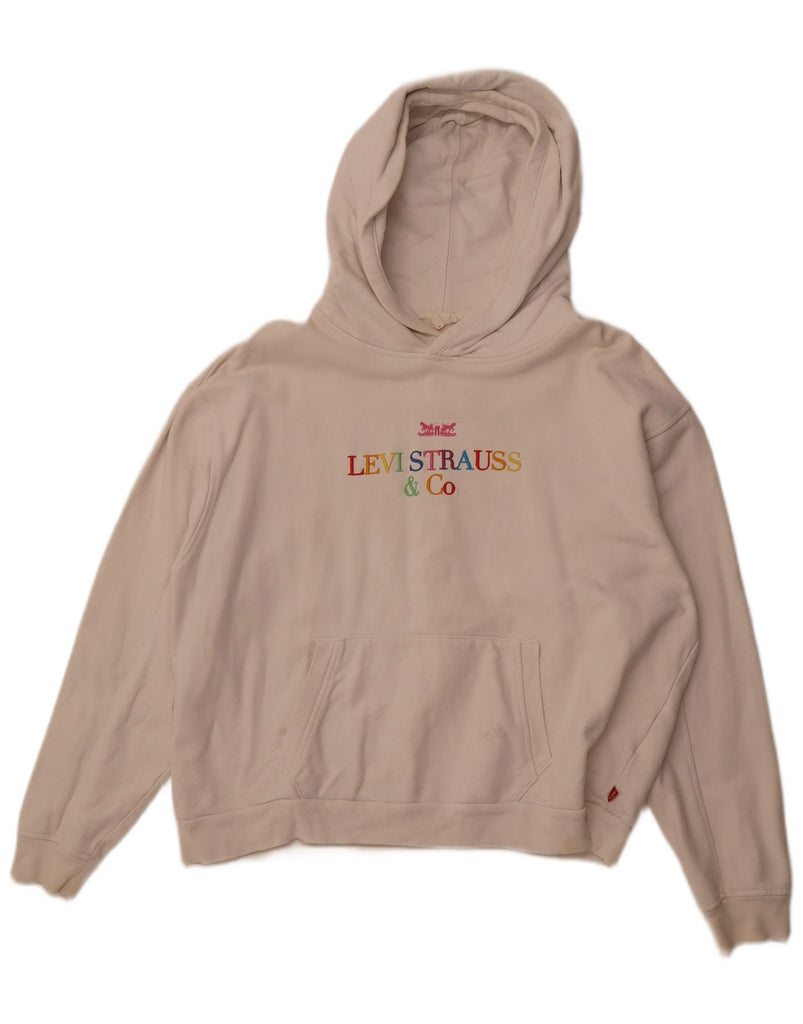 LEVI'S Womens Oversized Graphic Hoodie Jumper UK 14 Medium Off White