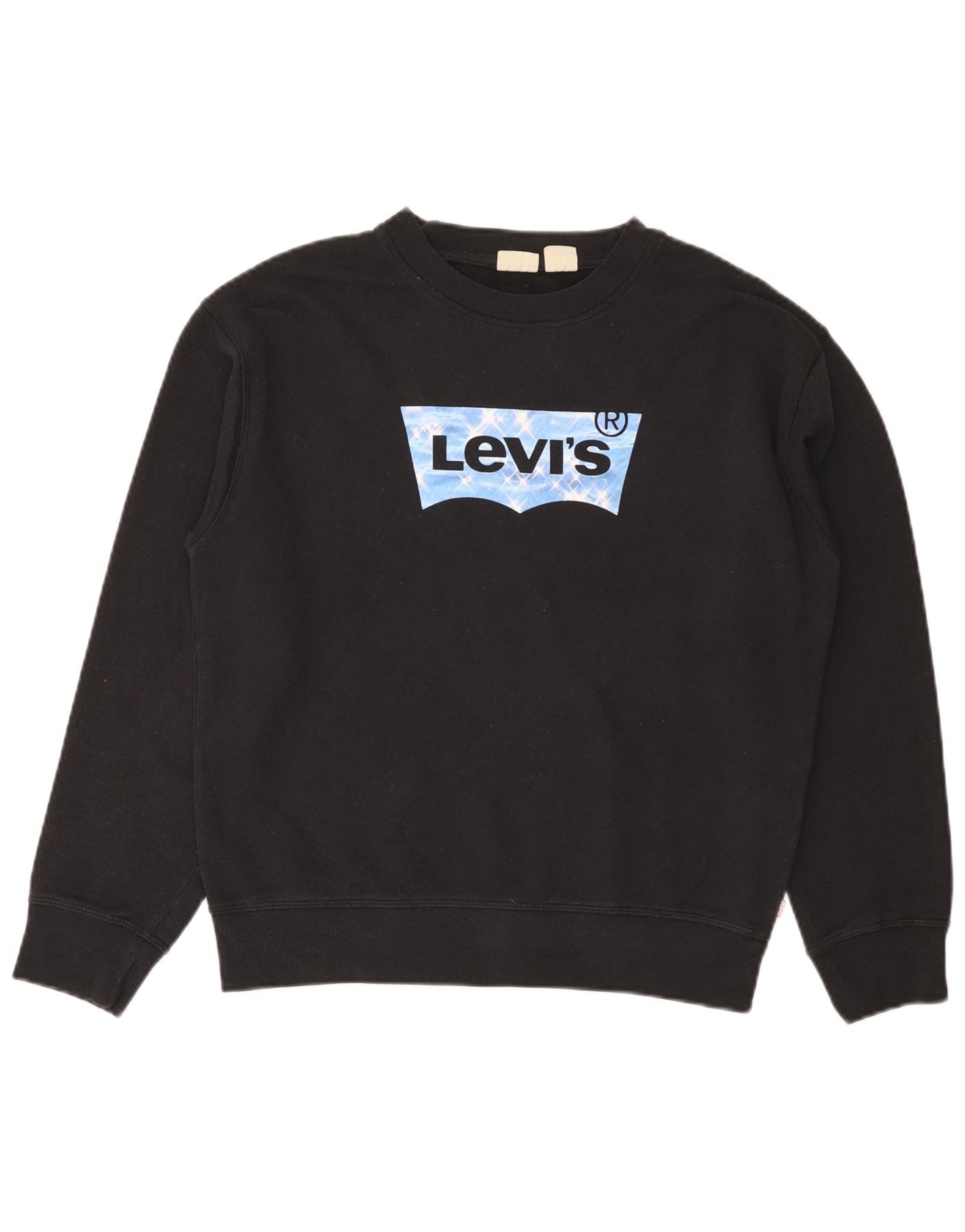 LEVI'S Womens Oversized Graphic Sweatshirt Jumper UK 10 Small Black Cotton