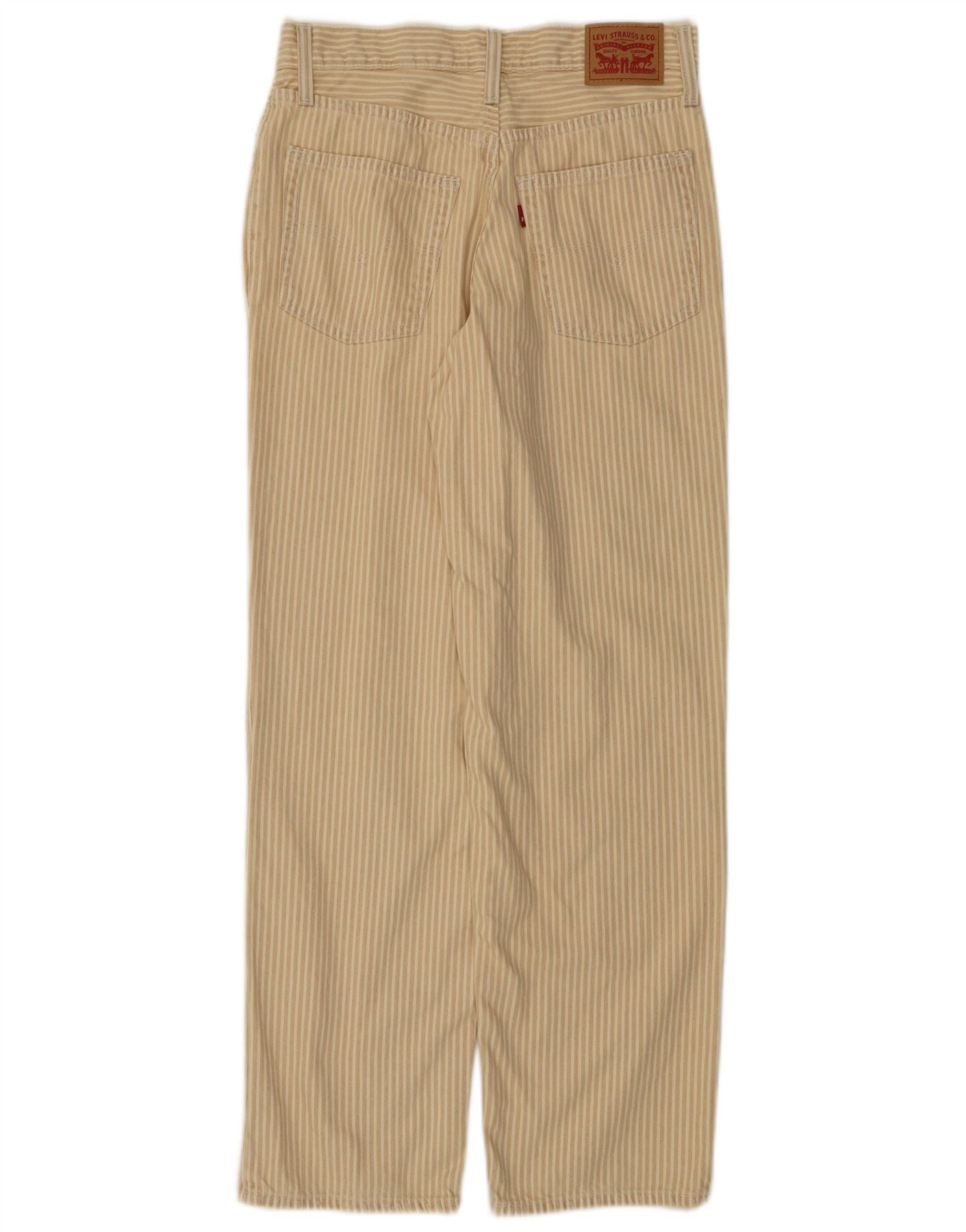 LEVI'S Womens Straight Casual Trousers W27 L31 Beige Striped Cotton