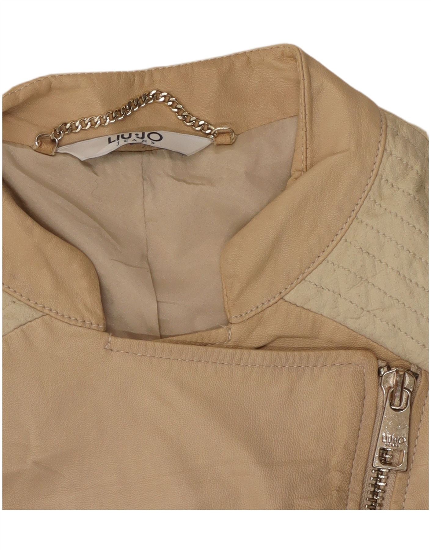 Liu Jo Womens Crop Biker Jacket IT 42 Medium Beige Colourblock Leather
