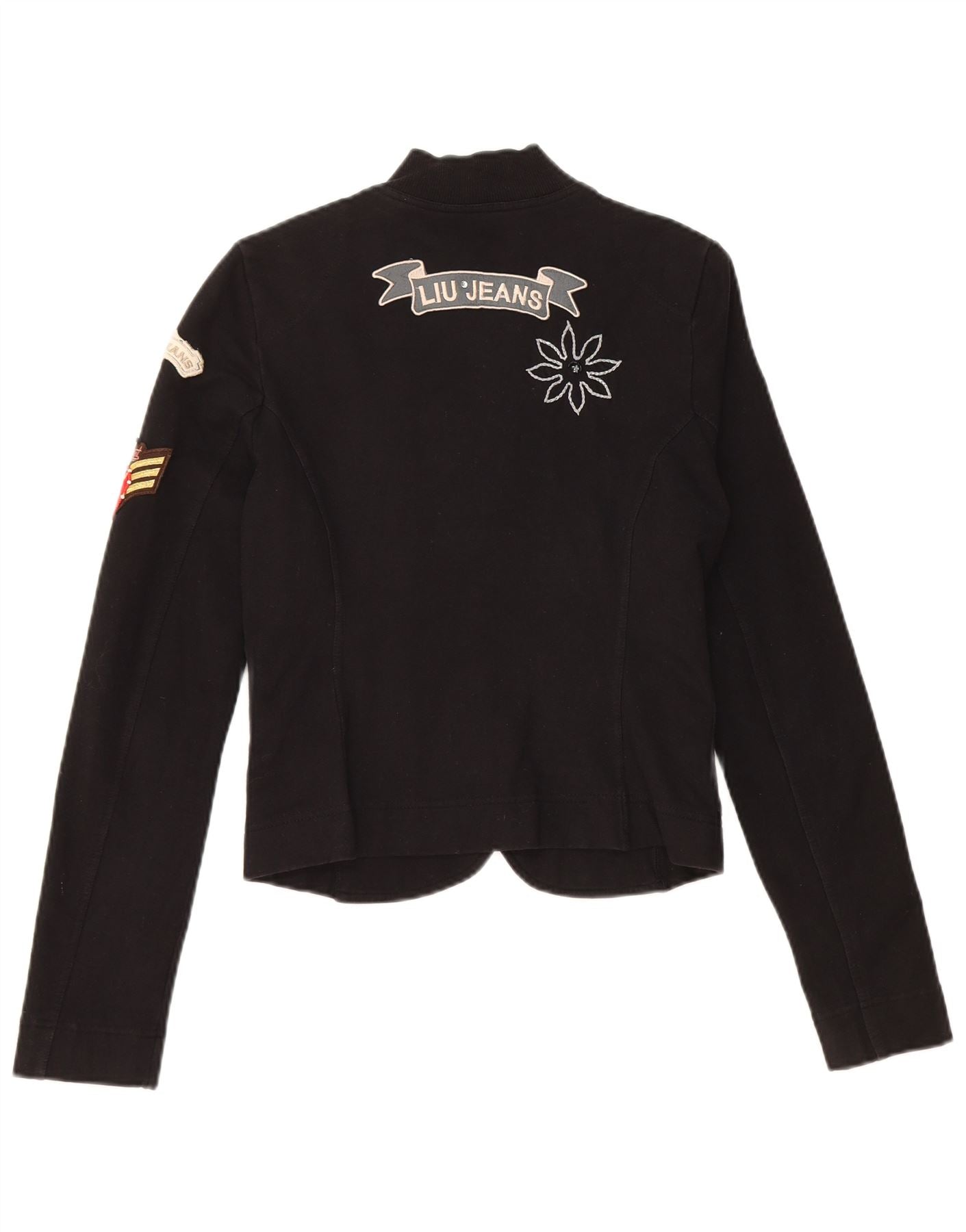LIU JO Womens Crop Graphic 4 Button Blazer Jacket UK 6 XS Black Cotton