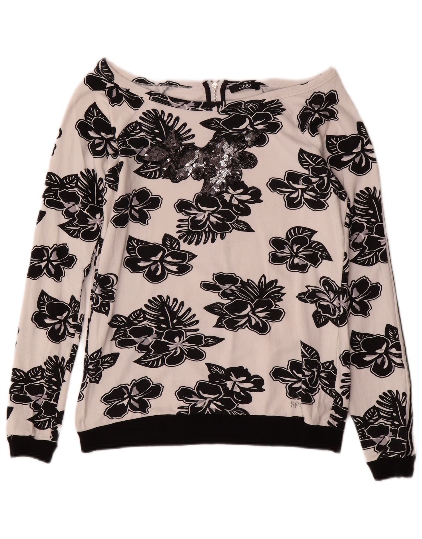 LIU JO Womens Sweatshirt Jumper UK 10 Small White Floral Viscose