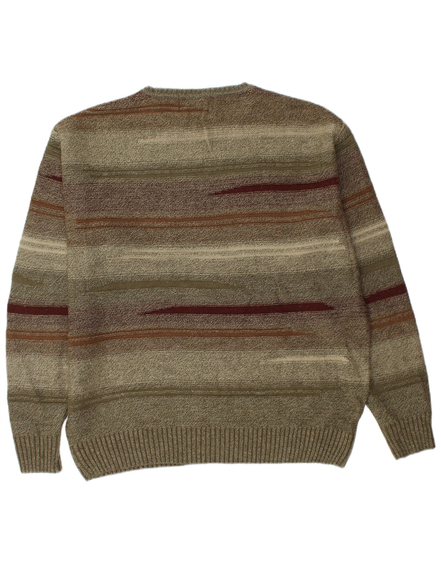 LONDON FOG Mens Crew Neck Jumper Sweater Medium Khaki Striped Acrylic