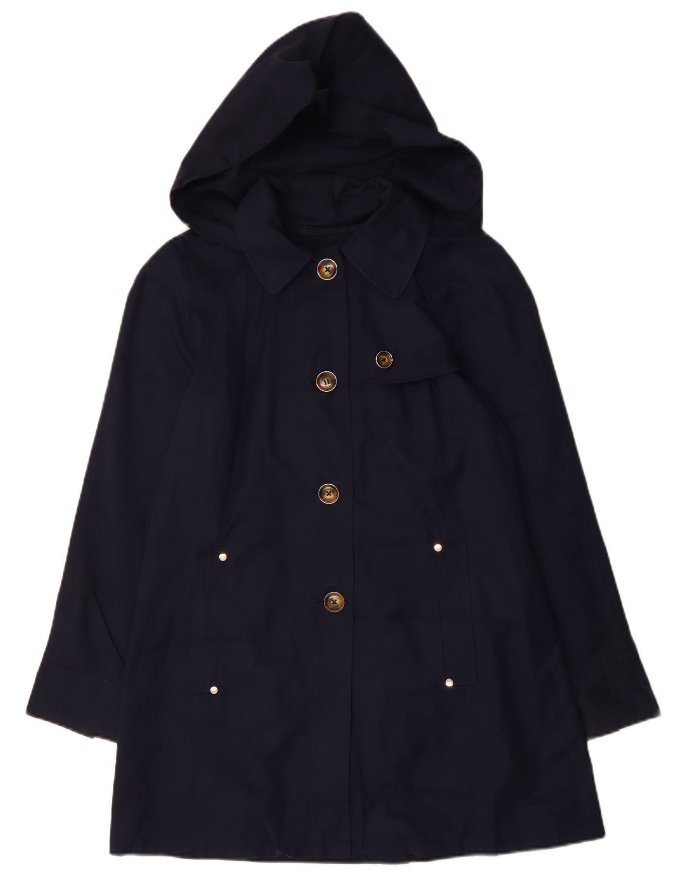 LONDON FOG Womens Hooded Trench Coat UK 14 Medium Navy Blue Cotton