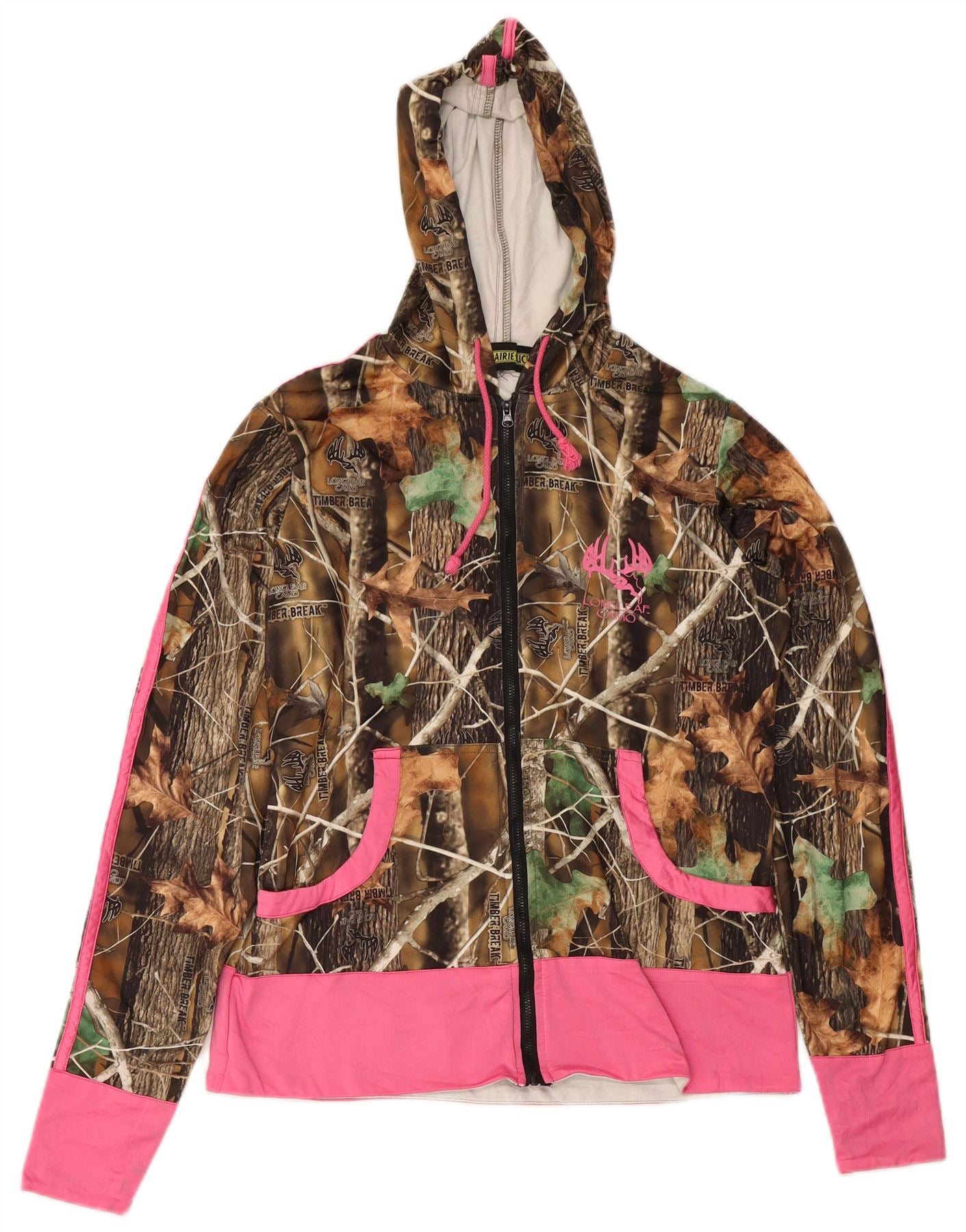 LONGLEAF CAMO Womens Zip Hoodie Sweater UK 14 Medium Beige Camouflage