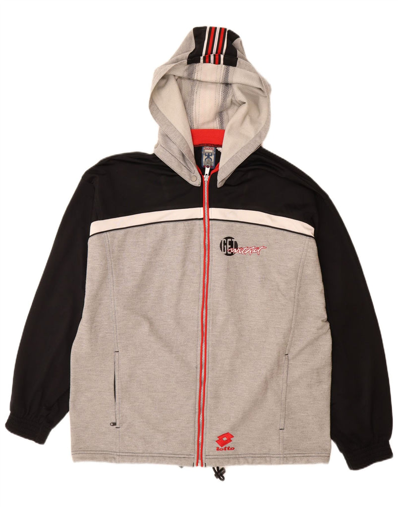 LOTTO Mens Graphic Hooded Tracksuit Top Jacket Large Grey Colourblock