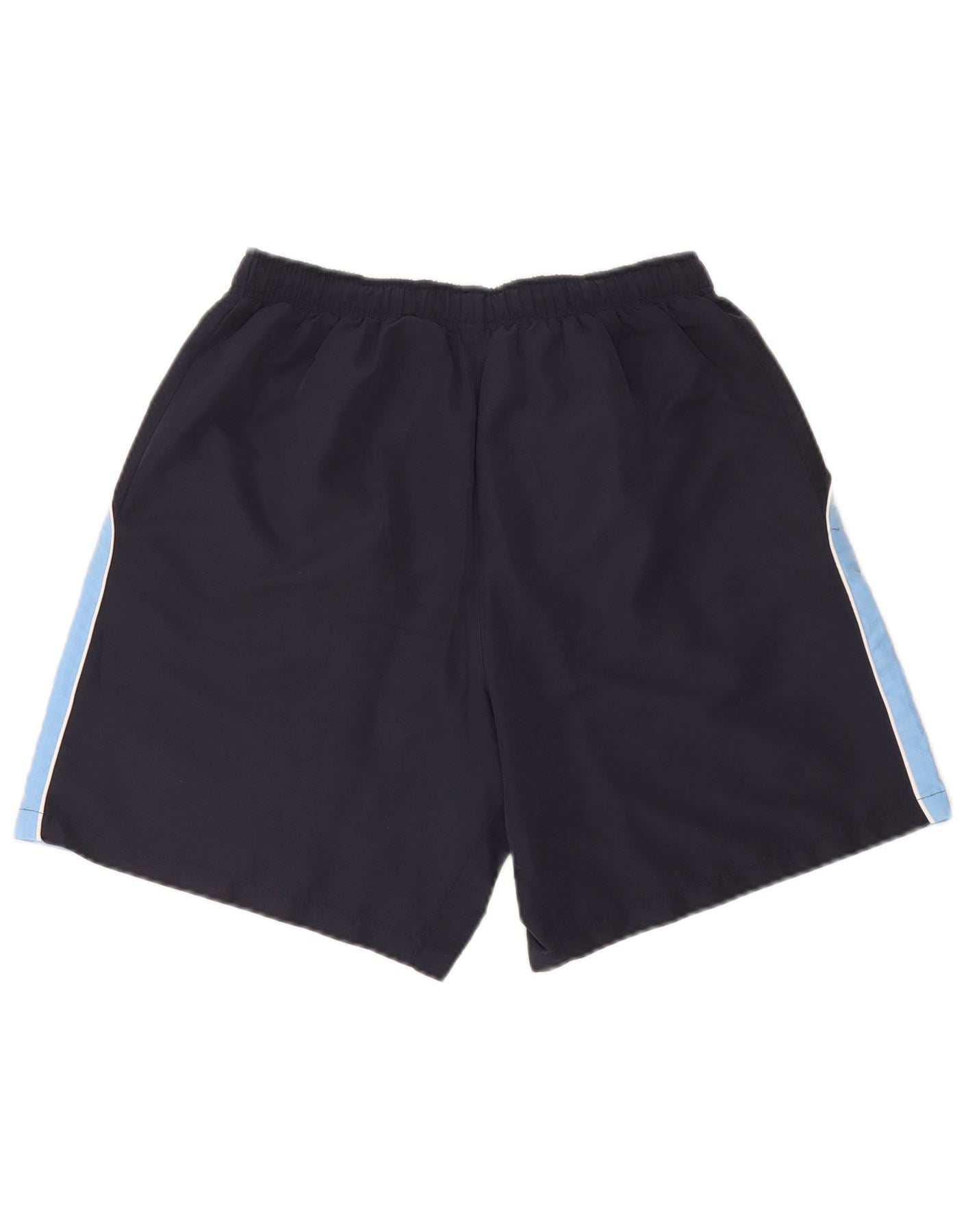 - AI Description: This Lotto mens shorts are crafted from lightweight woven polyester, ideal for sports. The navy blue colourblock design features light blue side panels for a dynamic look. An elasticated waist ensures a comfortable pull on fit. These athletic shorts include practical pockets and a subtle branded logo, perfect for football training.