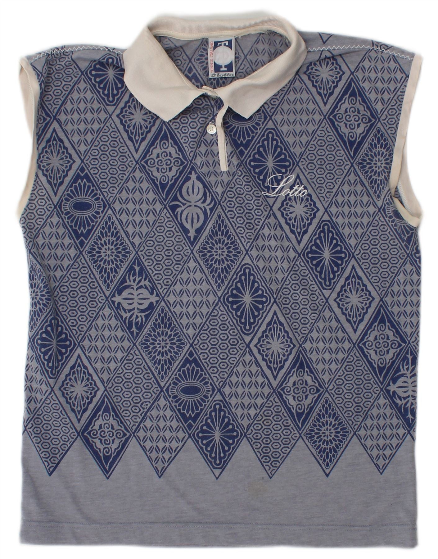 LOTTO Womens Sleeveless Polo Shirt UK 12 Medium Blue Geometric