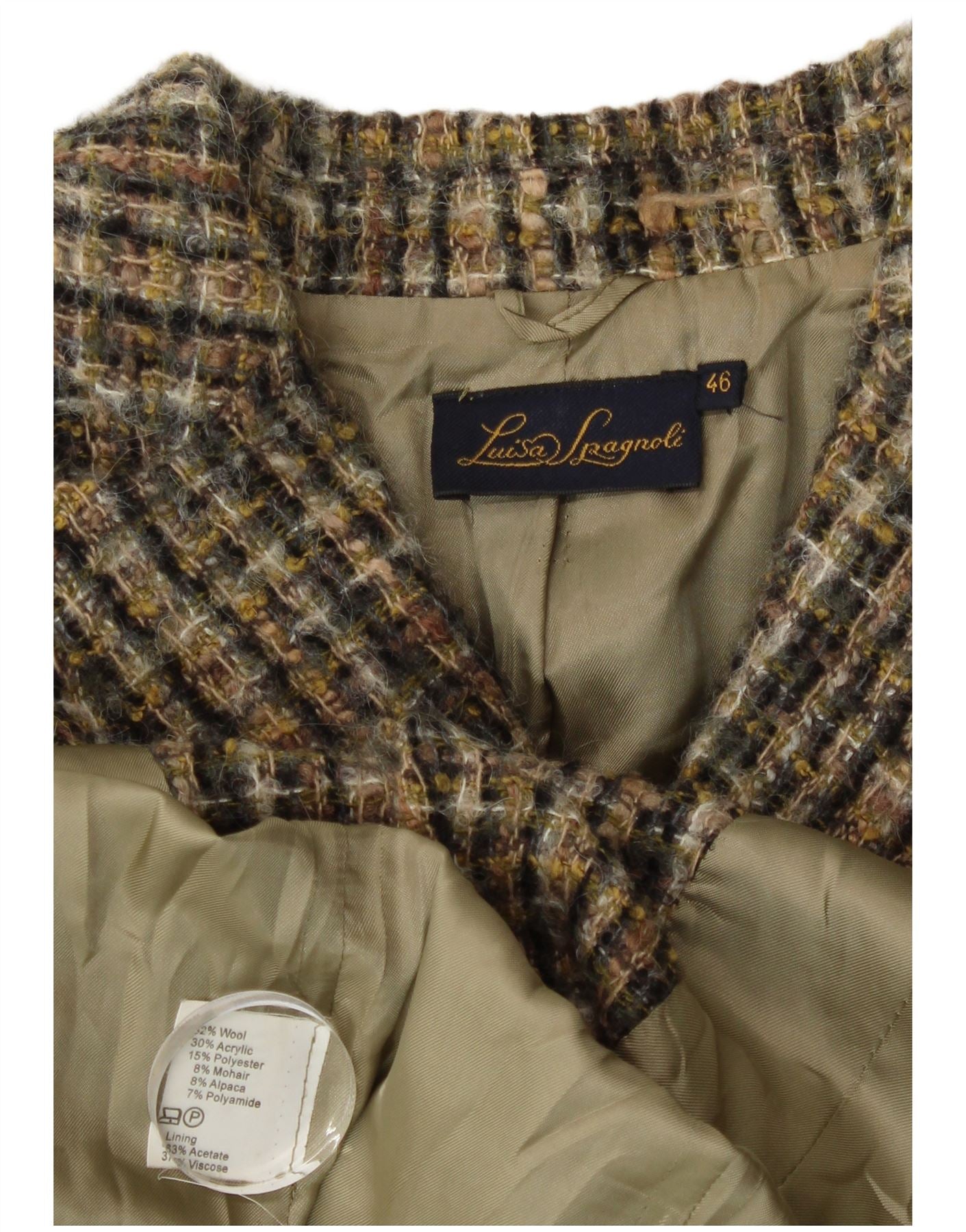 Luisa Spagnoli Womens 3 Button Blazer Jacket IT 46 Large Khaki Check Wool
