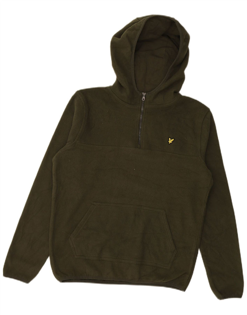 LYLE & SCOTT Boys Hooded Zip Neck Fleece Jumper 14-15 Years Khaki
