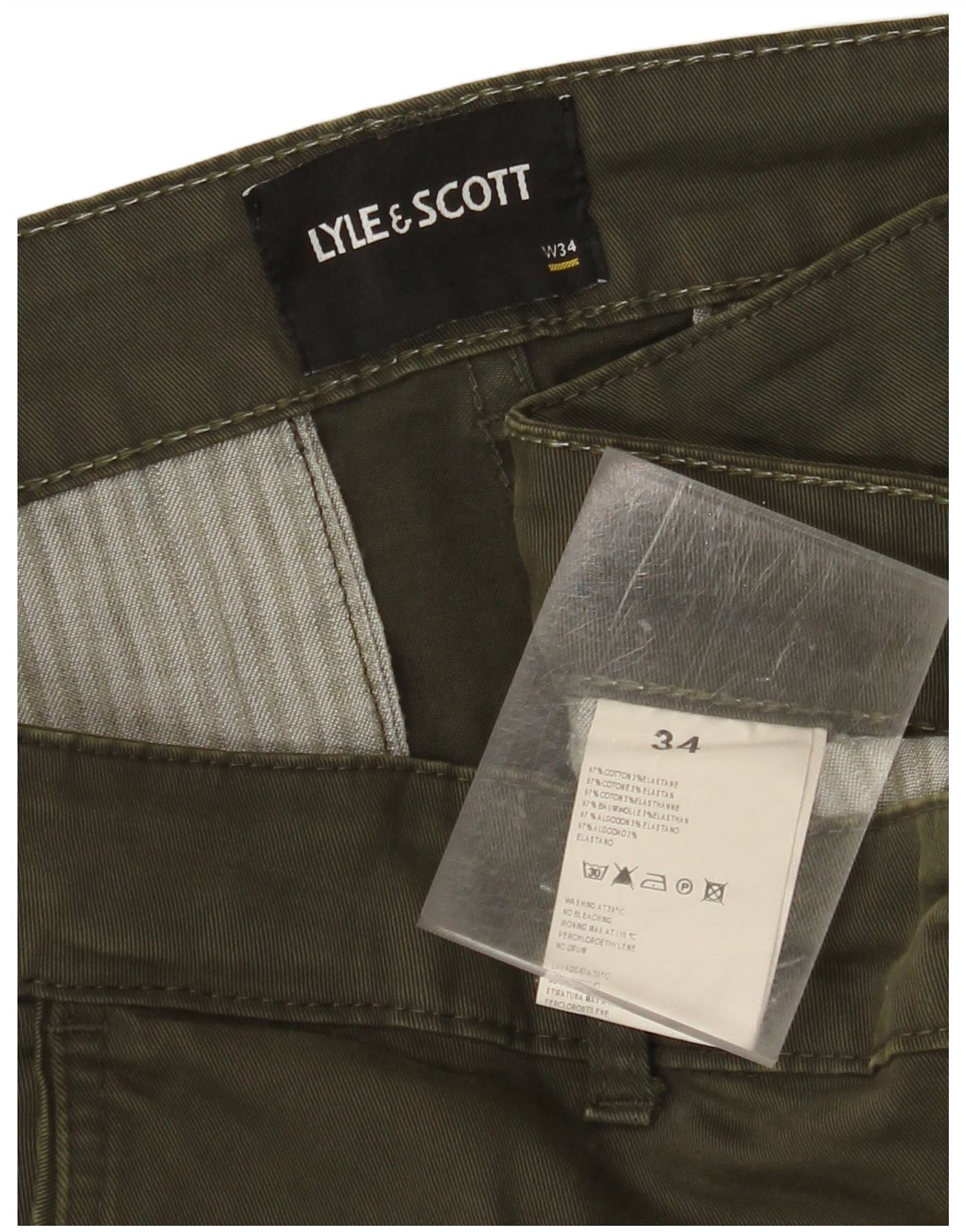 LYLE & SCOTT Mens Slim Cargo Trousers W34 L34 Khaki Cotton