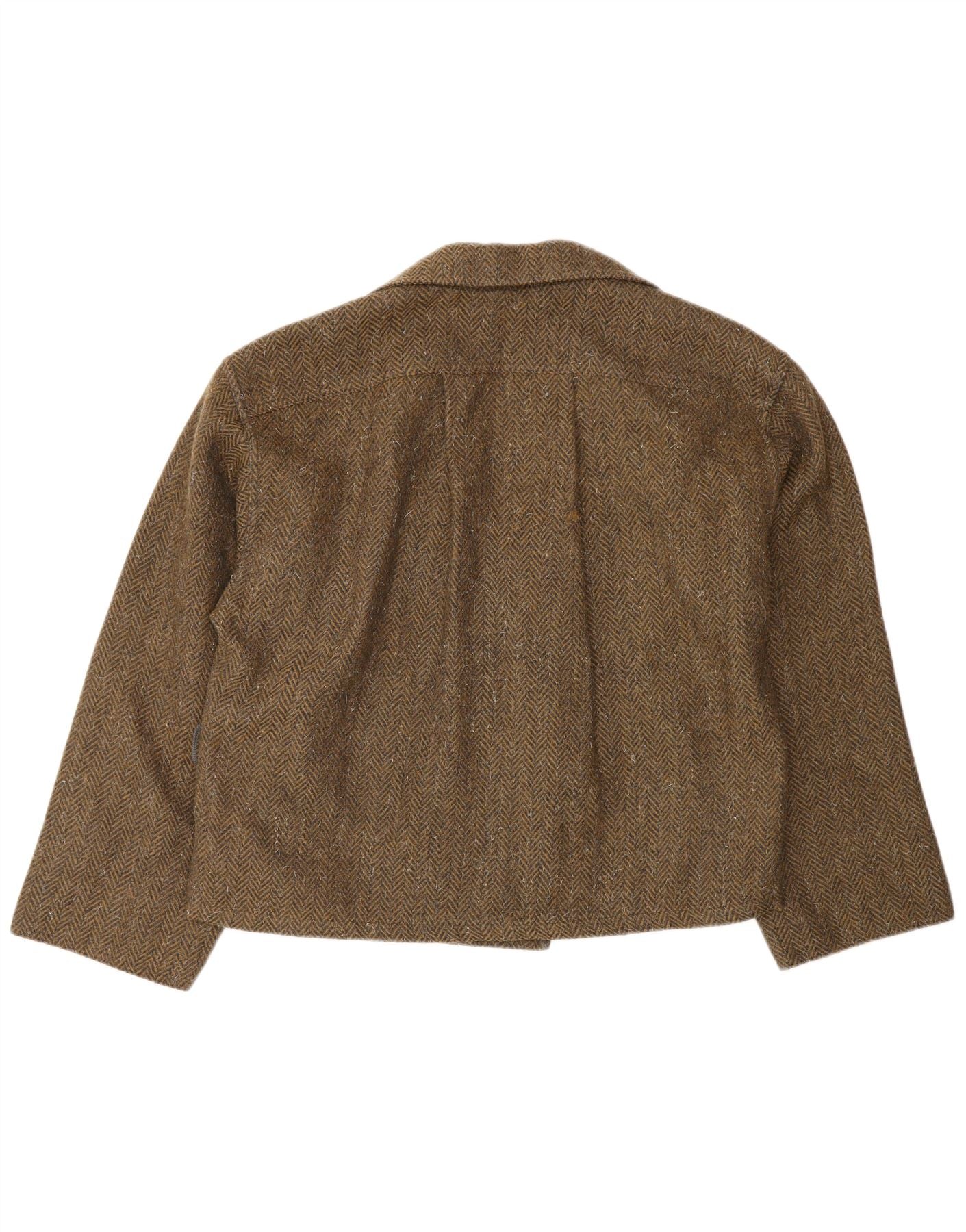 MARELLA Womens Oversized Open Blazer Jacket UK 10 Small Brown Herringbone