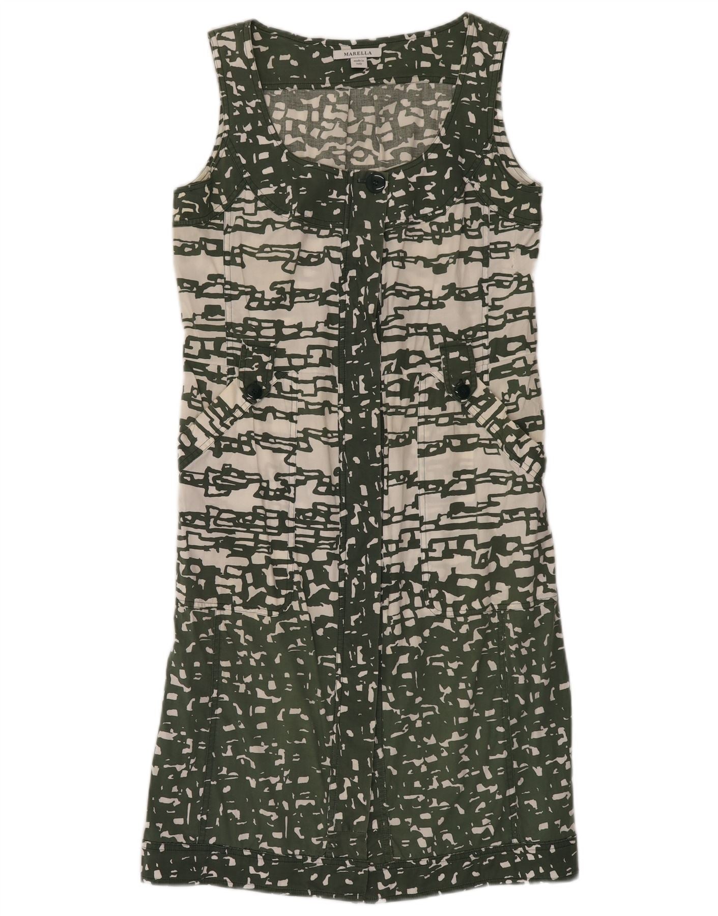 MARELLA Womens Sleeveless Shirt Dress UK 12 Medium Green Geometric