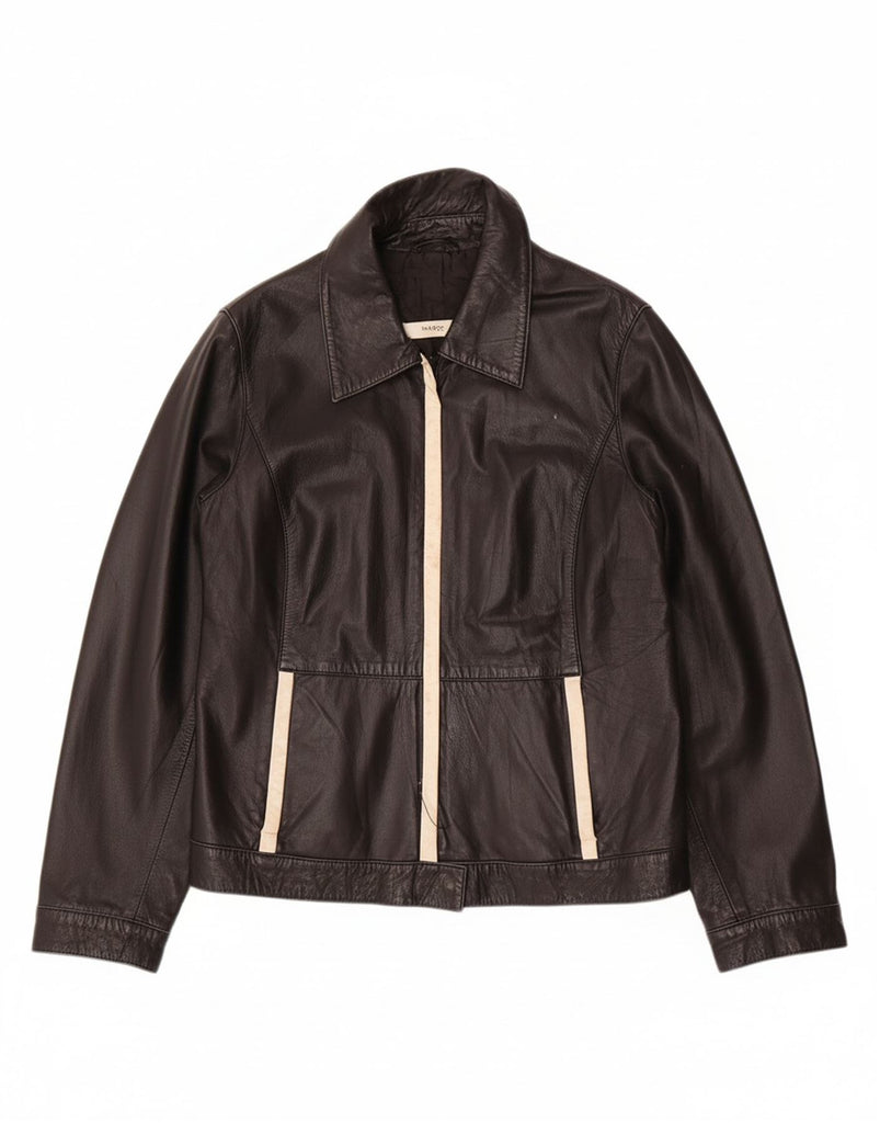 MARINA RINALDI Womens Jacket Size 19 Small Black Colourblock Leather